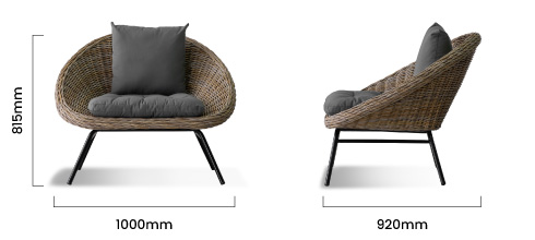 Unwind in style with the Mykonos. Its lightweight but hardy rattan weave offers a good degree of natural resistance to moisture damage, making it an ideal addition to your undercover patio.