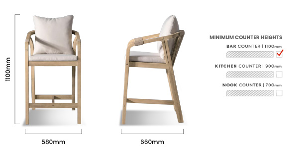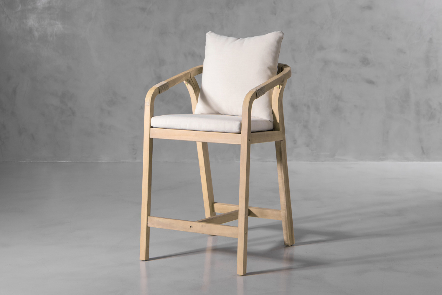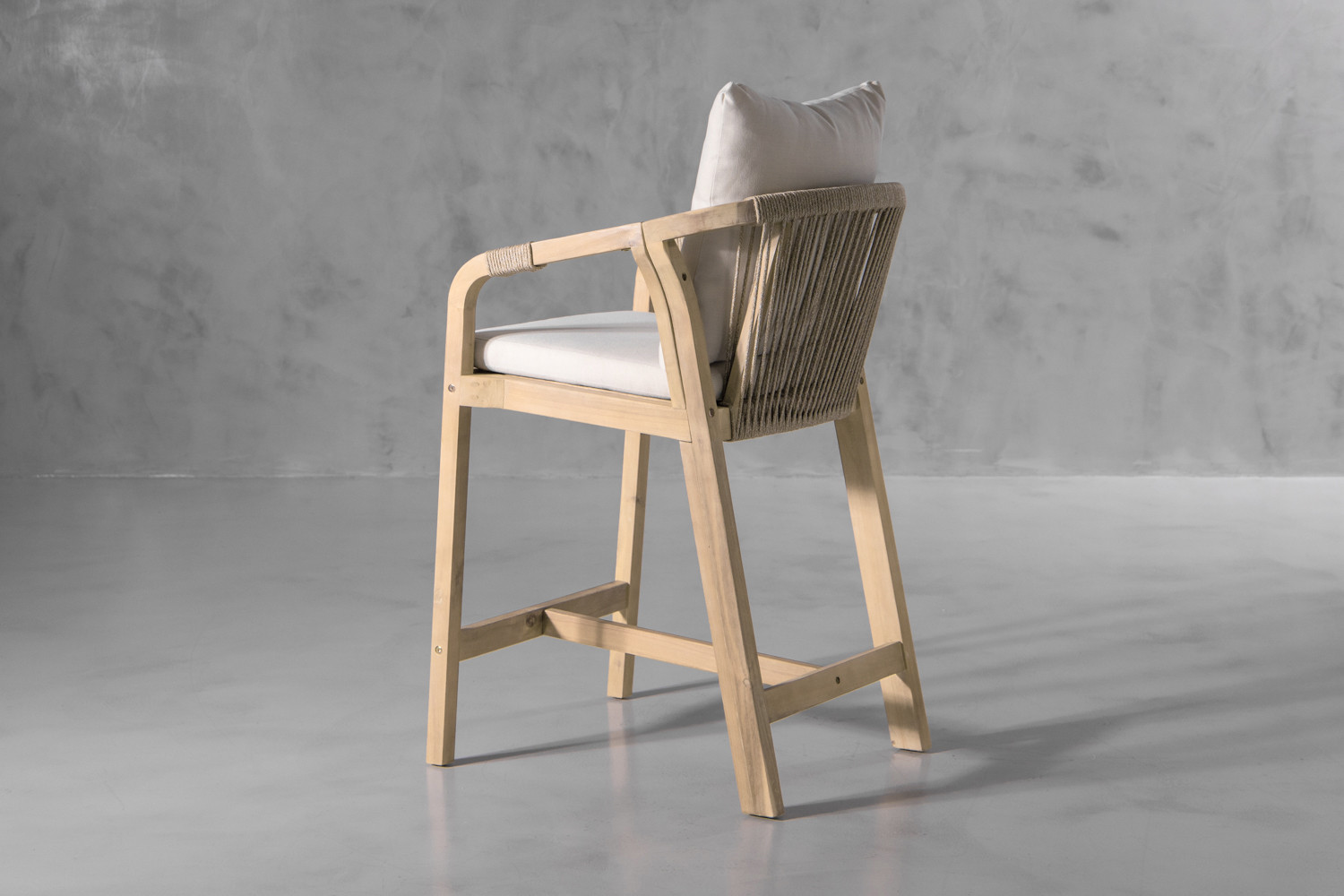 The Luciana Patio Bar Chair makes for an ideal sitting spot for intimate wine or cocktail nights and late-night coffee sessions. The counter height bar chair is made from solid Acacia wood with high-quality polyester cushions and detailed nylon rope weaving.