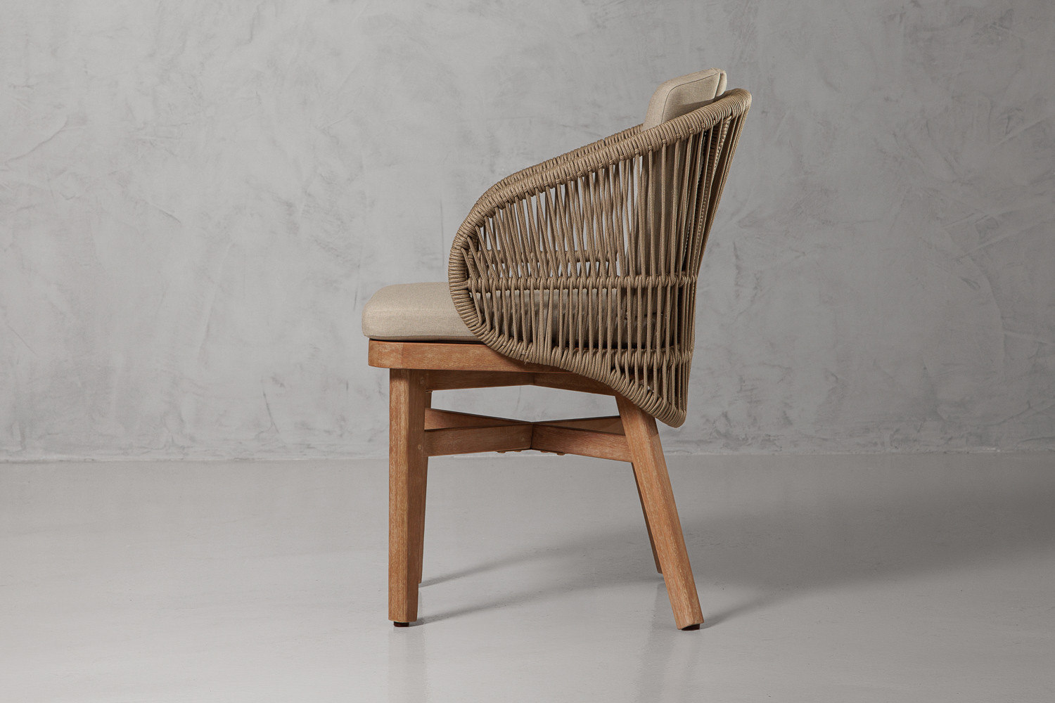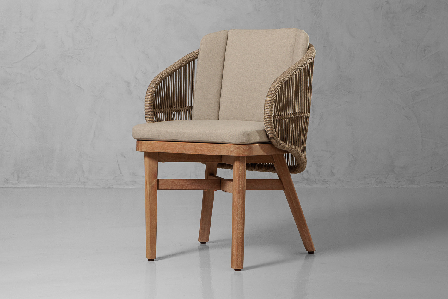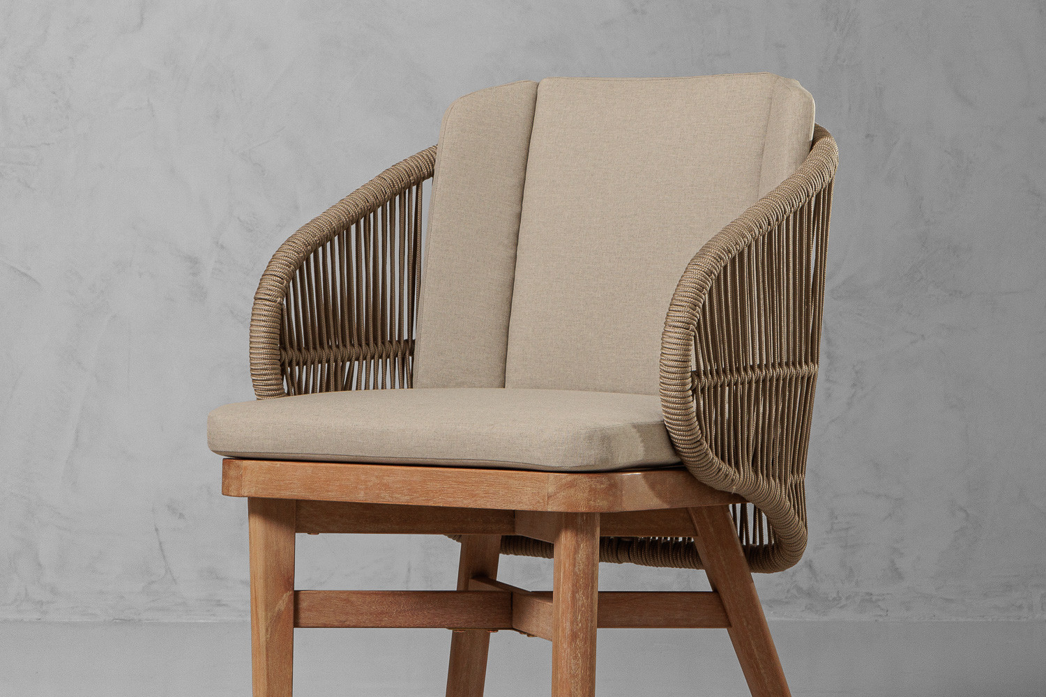 The Palmer Patio Dining Chair features a stone-toned polyester seat on a light teak eucalyptus frame with subtle rattan detailing. Soft, durable, and comfortable, it complements timber, stone, or metal dining tables while adding texture and warmth. Perfect for patios, verandas, or poolside dining, the Palmer Chair invites long, relaxed meals and conversations.