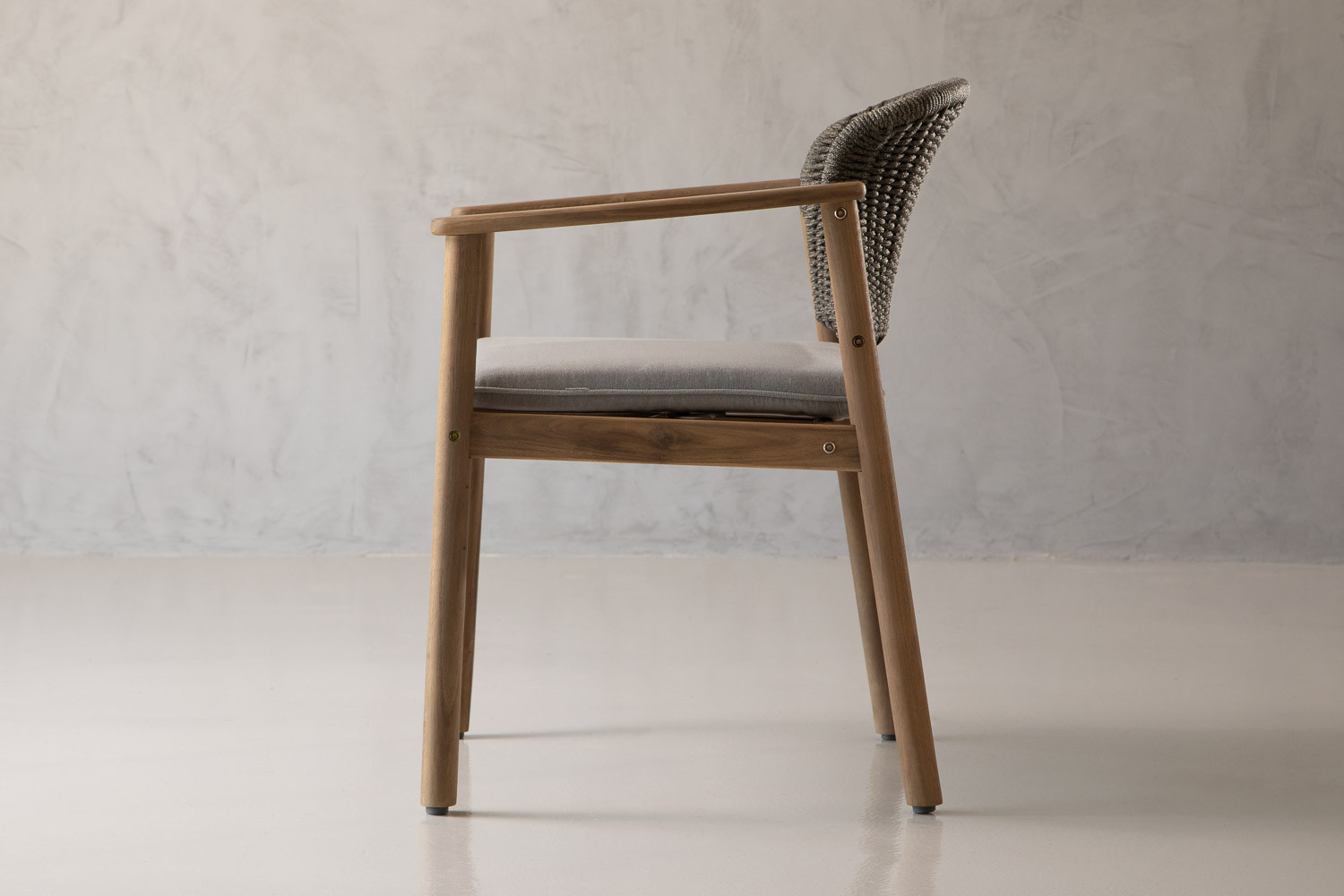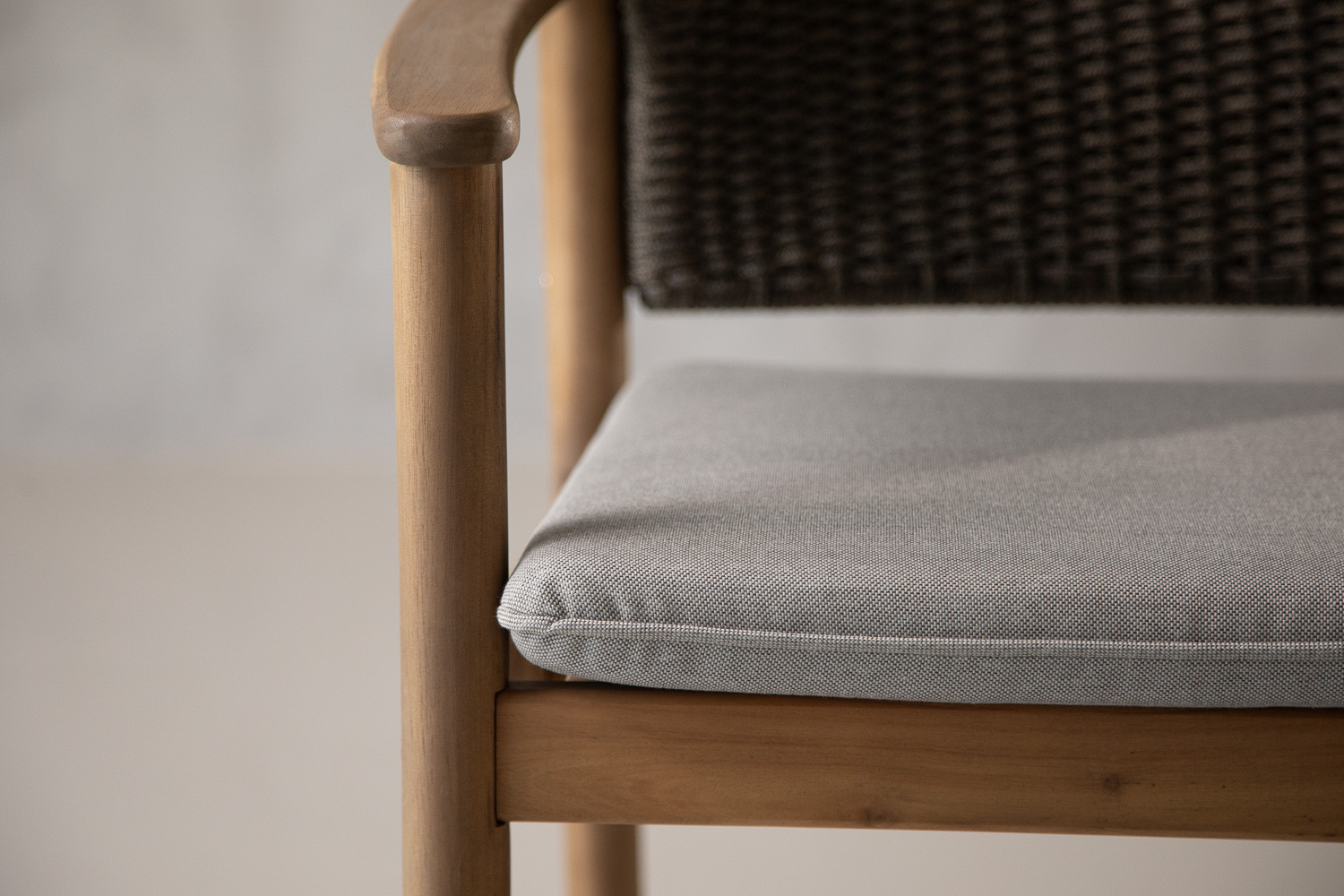 Blending natural texture with a contemporary silhouette, the Mayfair Patio Dining Chair brings a polished, resort-ready feel to outdoor dining. Crafted from Acacia wood in a soft greywash finish, it highlights the timber’s warm grain while keeping the look light and modern. A beautifully woven backrest adds depth and designer detail, while the upholstered seat cushion invites you to linger in style.