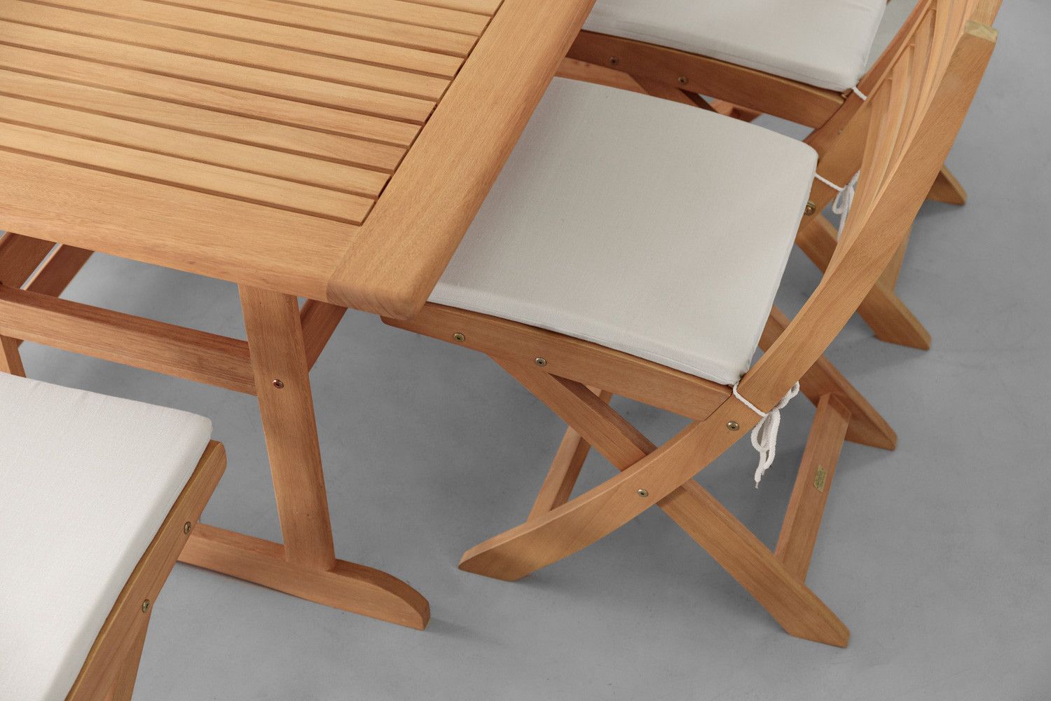 The stunning Orion Patio Dining Chair is the ideal seating for intimate outdoor entertaining. Crafted from environmentally friendly eucalyptus wood in a beautiful natural clarity, the chair features an elegant design with folding mechanism for easy storage and cleanup. This crafted wooden chair is complimented by a comfortable cushion which is easily fixed to the chair.