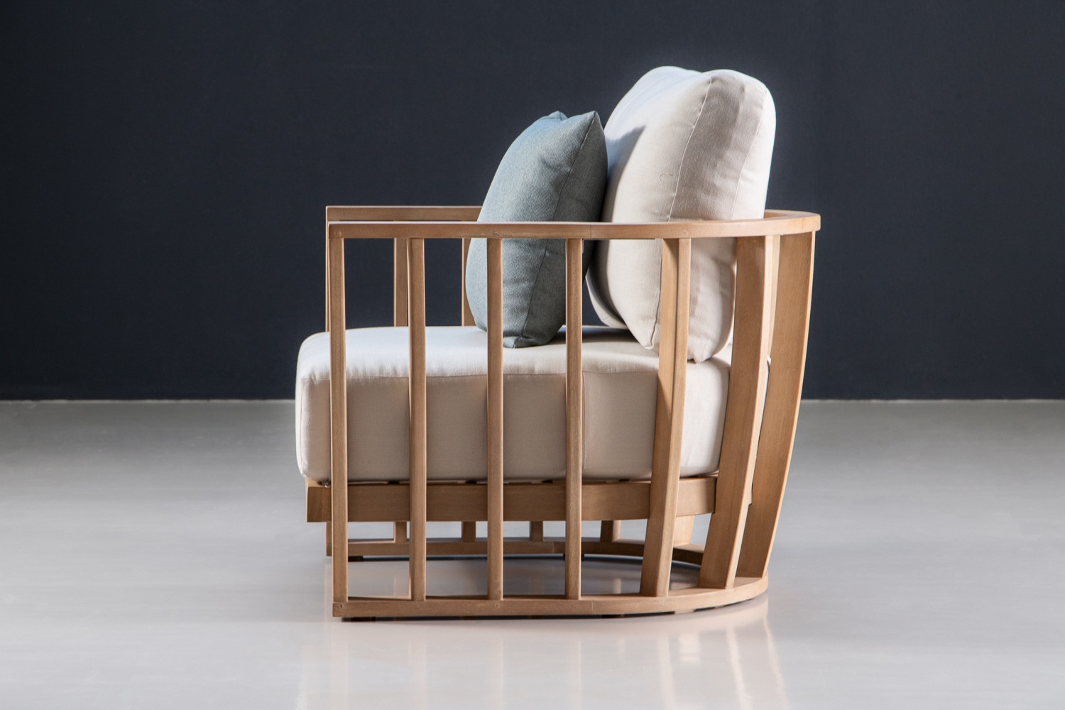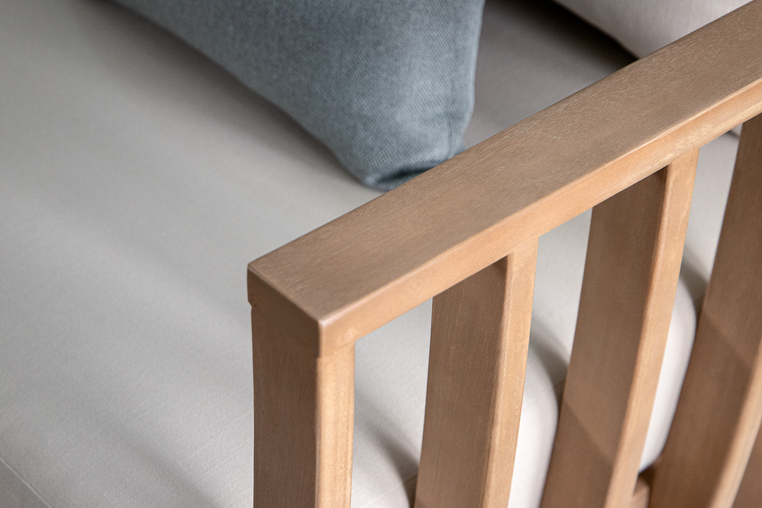 The St Lucia Patio Cocktail Set brings the essence of relaxed Balinese living to your outdoor space. Its quaint design, featuring curved slatted backrests and soft linen cushions, creates a cozy and inviting seating arrangement for covered patios.