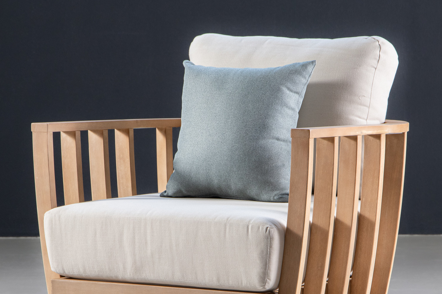 Transform your covered patio into a serene retreat with the St Lucia Patio Cocktail Set. This Balinese-inspired set includes two armchairs and a matching side table, crafted from durable Eucalyptus wood. With curved slatted backrests, plush linen cushions, and Olefin scatters, this patio set offers both style and comfort. Its relaxed seating position is perfect for unwinding, making it an ideal choice for intimate outdoor spaces.