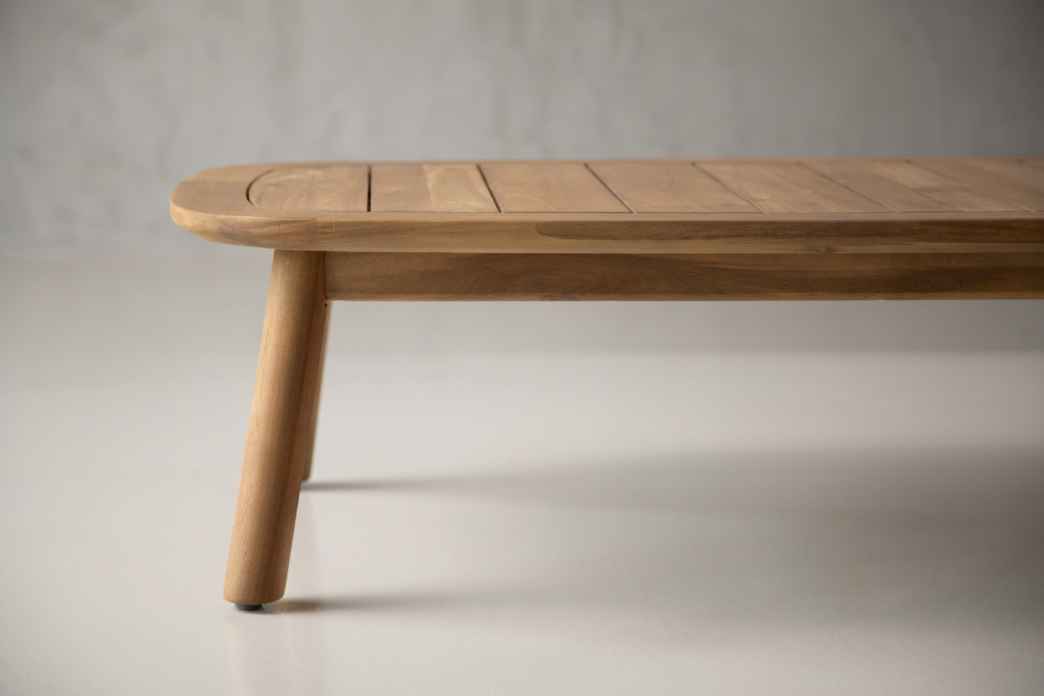 The Mayfair Coffee Table brings a sense of ease to your outdoor living space through its softly rounded form and natural texture. Crafted from solid acacia wood and finished in a subtle grey wash, the surface reveals the character of the grain while maintaining a calm, refined presence. Its gently curved shape introduces a sculptural softness that breaks from rigid lines, allowing the table to enhance any space. Designed to feel grounded yet considered, the Mayfair Coffee Table offers a timeless foundation for relaxed, everyday living.