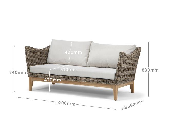 2 Seater: 1600mm (L) x 865mm (W) x 830mm (H) | Seat Height: 420mm | Seat Depth: 510mm