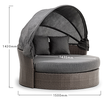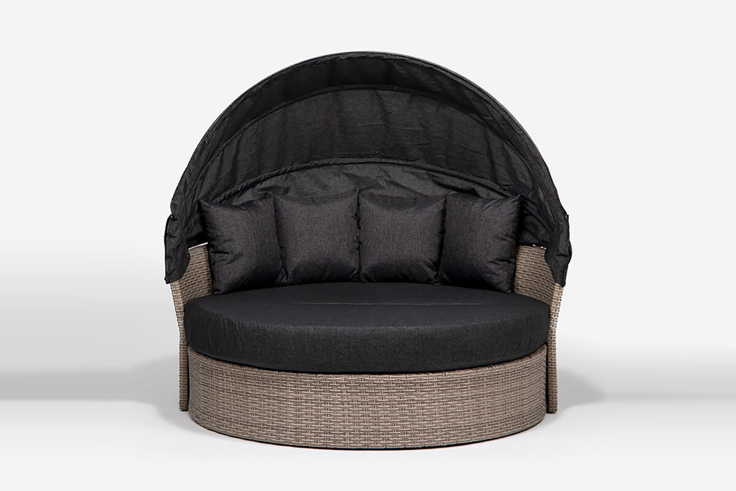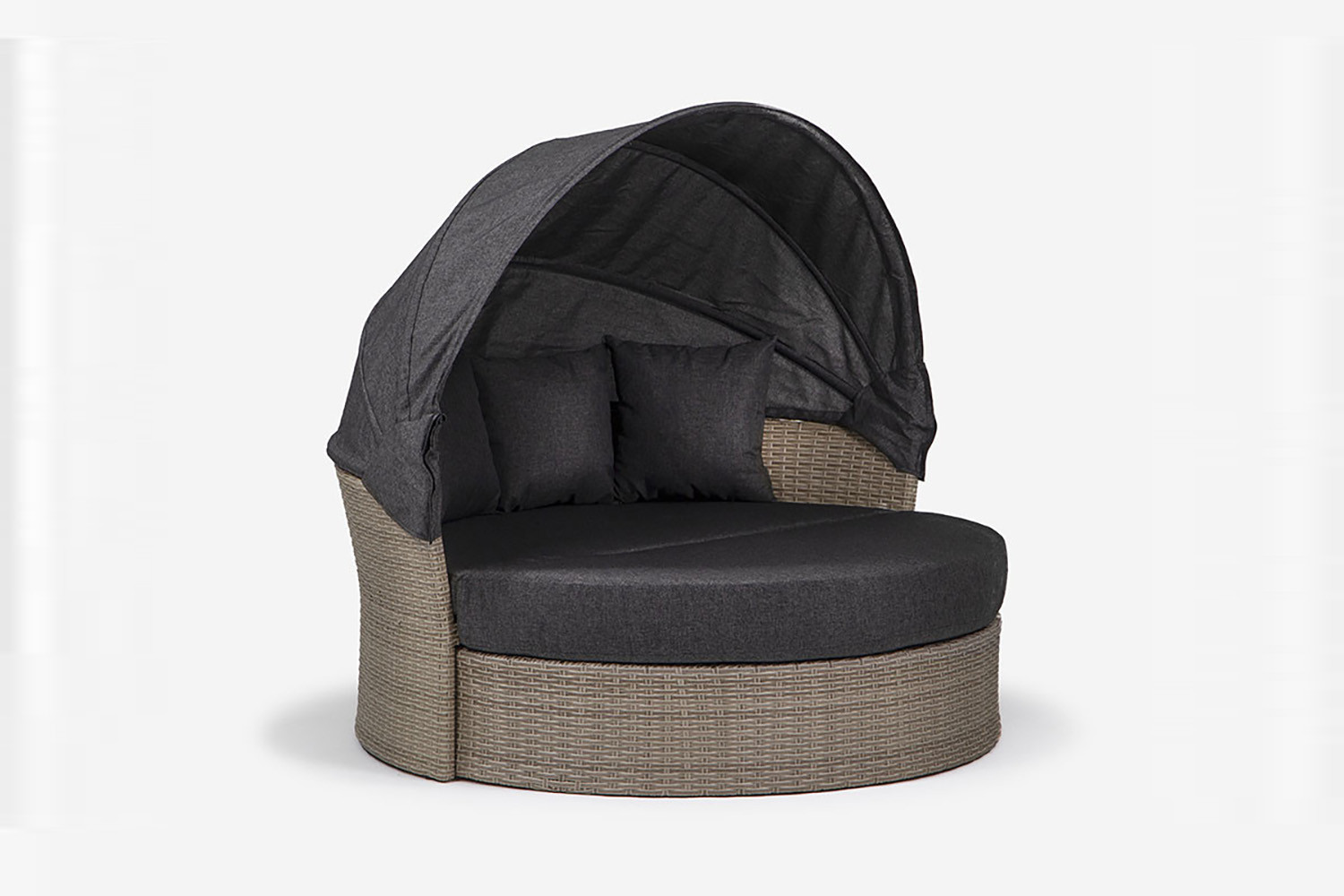 This comfortable daybed easily accommodates up to three people, and transforms with zero effort into a relaxed three-seater, with retractable canopy providing quality shade when you want it. If you’re sitting solo, swivel the bottom part half way to give yourself a convenient side table.