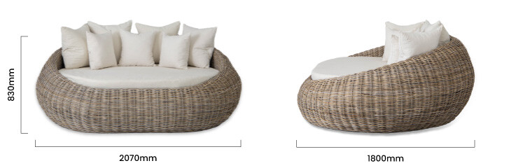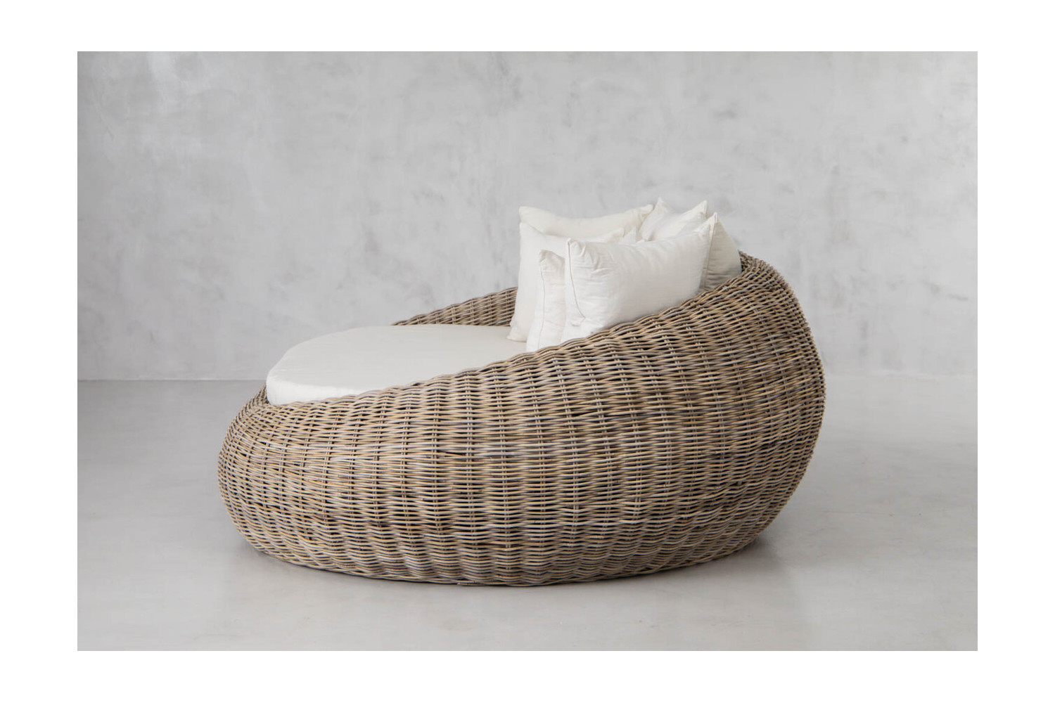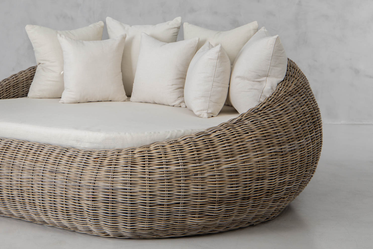 Take your outdoor relaxation to a new level with the Lotus Patio Daybed. This larger-than-life daybed features a woven rattan base with plush fabric cushion and scatters, transforming your patio set-up to an outdoor relaxation station. This patio daybed offers a spacious and laid-back lounging with a fresh take on modern style.