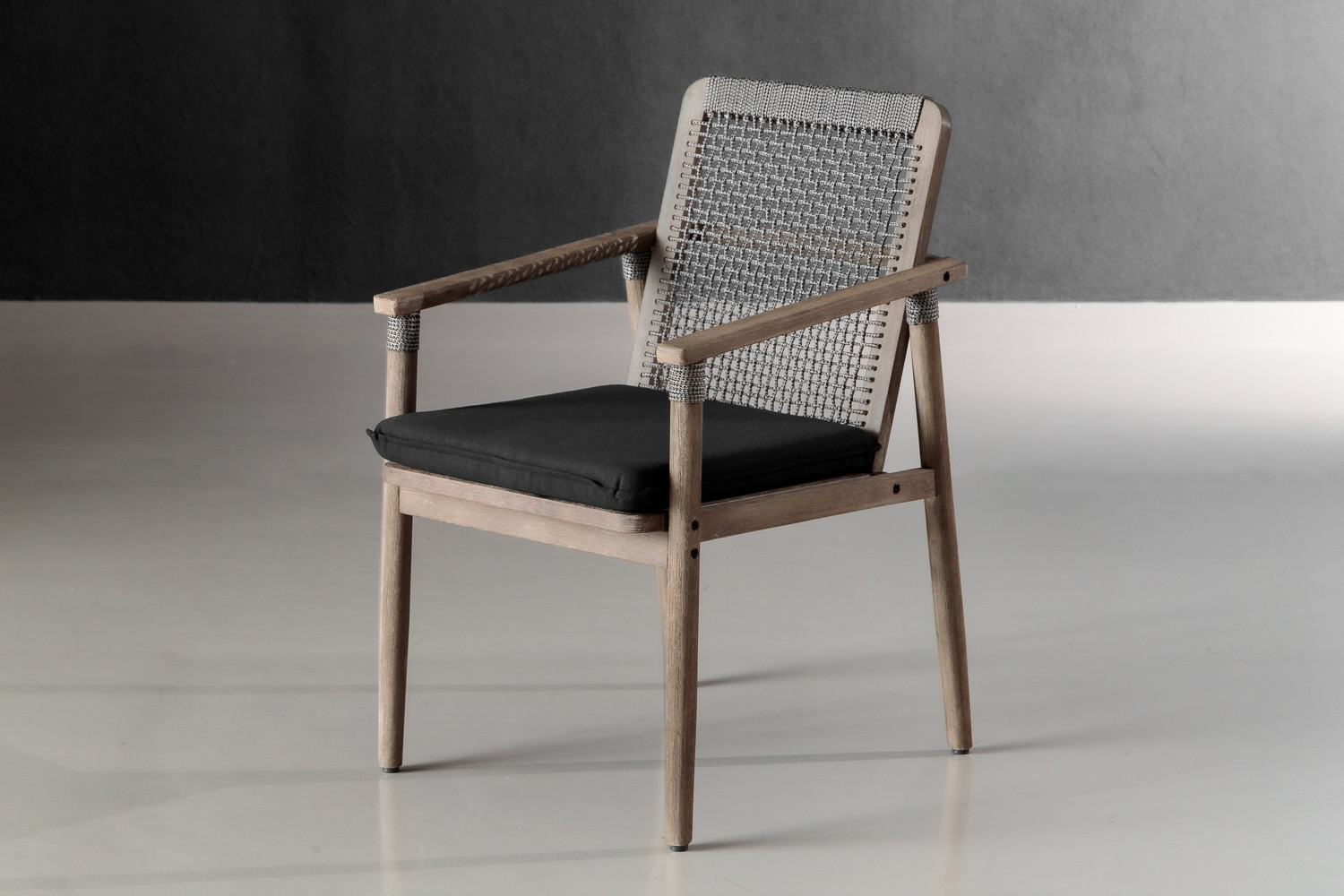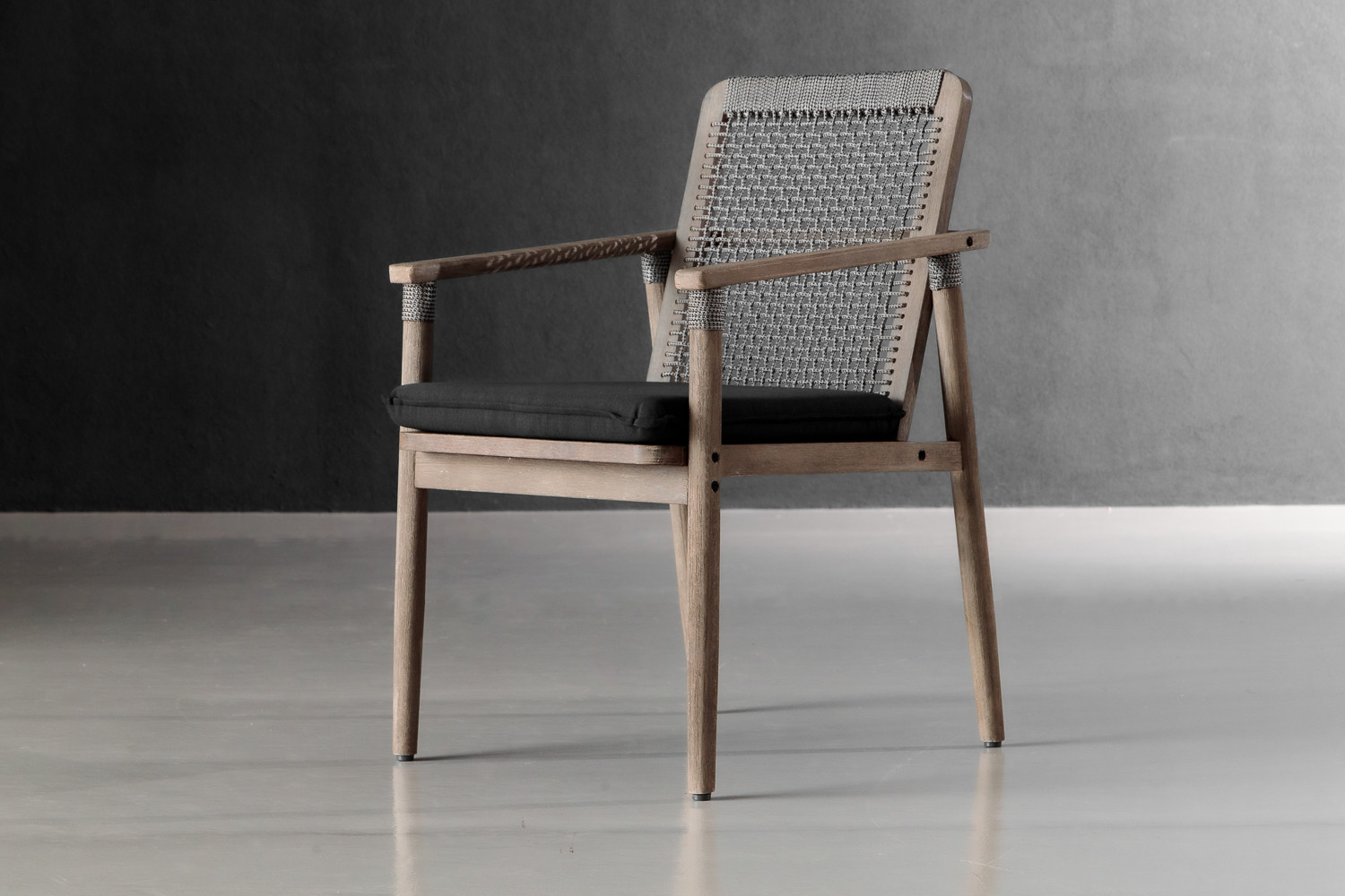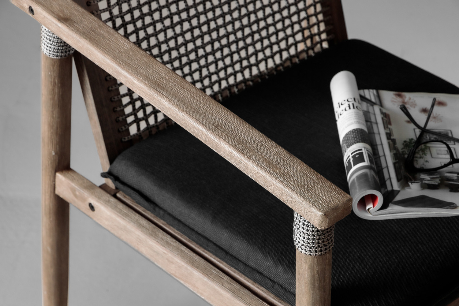 The Ashburn Patio Dining Chair is a stunning example of how modern design can elevate outdoor spaces. Featuring a solid eucalyptus wood frame, this chair is crafted with a beautiful mid-century aesthetic that seamlessly fits into any contemporary outdoor setting. The backrest is handwoven from durable Olefin rope, creating a striking visual contrast against the rich wood tones, while providing comfort and support.
