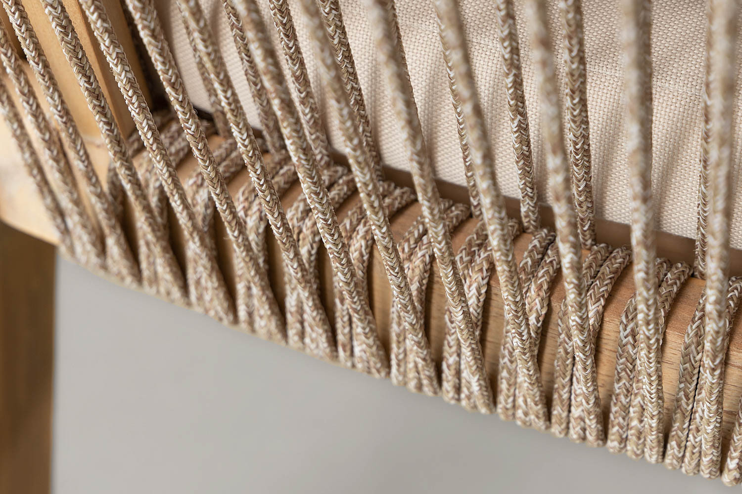 Material: Acacia Wood | Weaving: Nylon Rope | Cushions: Polyester