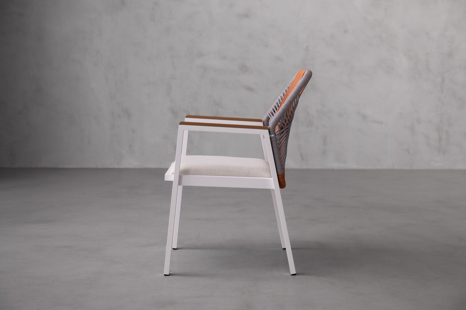 The Sultana Chair is crafted for comfort and longevity, boasting an aluminium frame alongside its stunning rope backrest. It’s perfectly suited for sophisticated outdoor dining or relaxed moments winding down on the patio.
