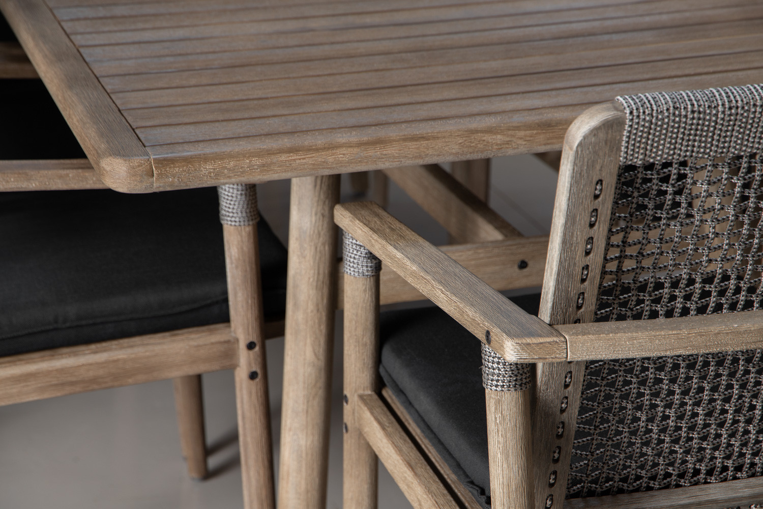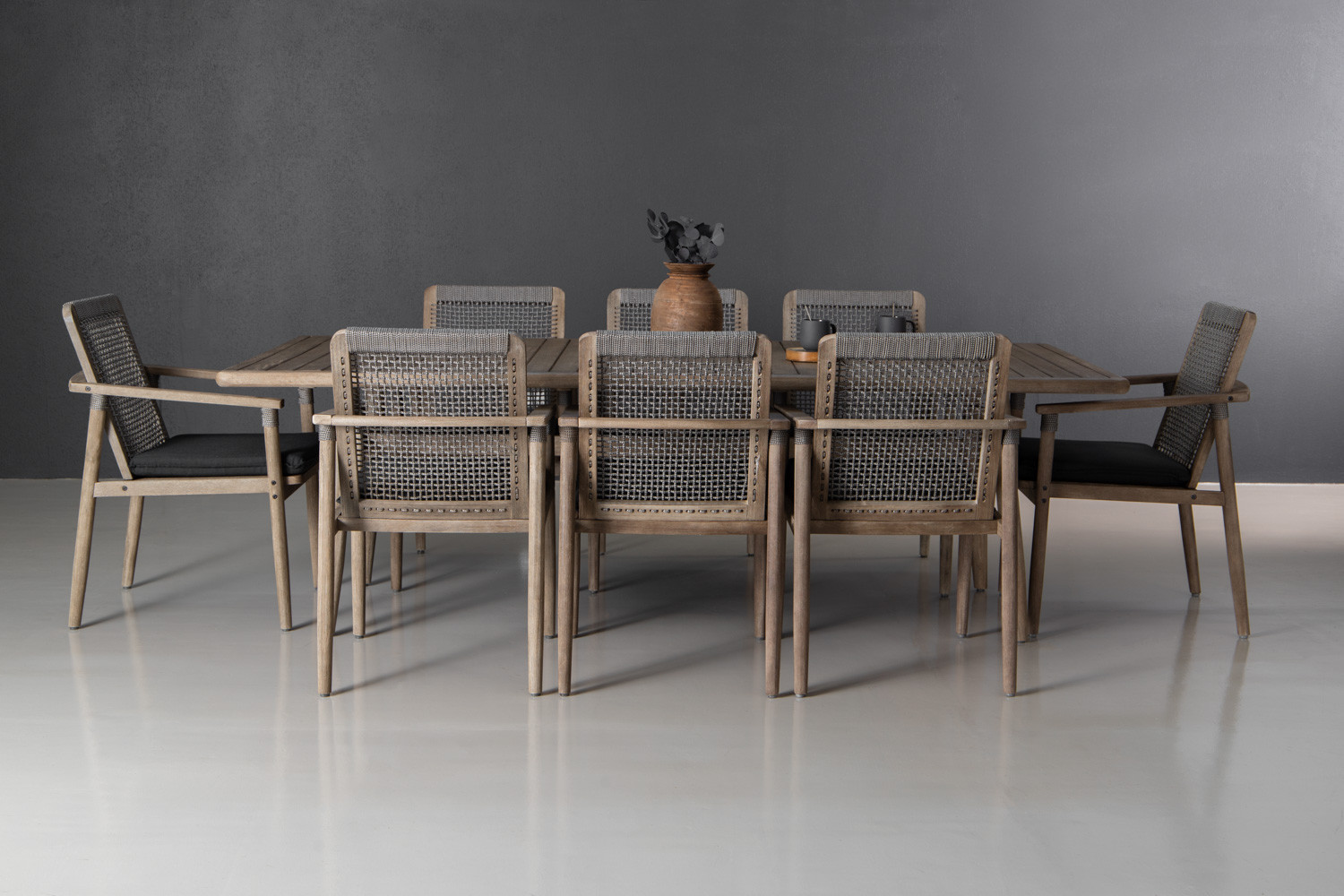 This dining set is designed for covered patios, ensuring it remains a stylish and lasting centrepiece for your outdoor living space.