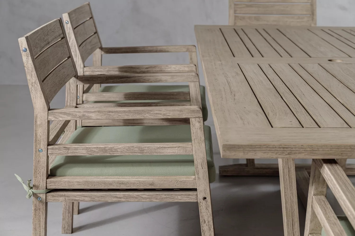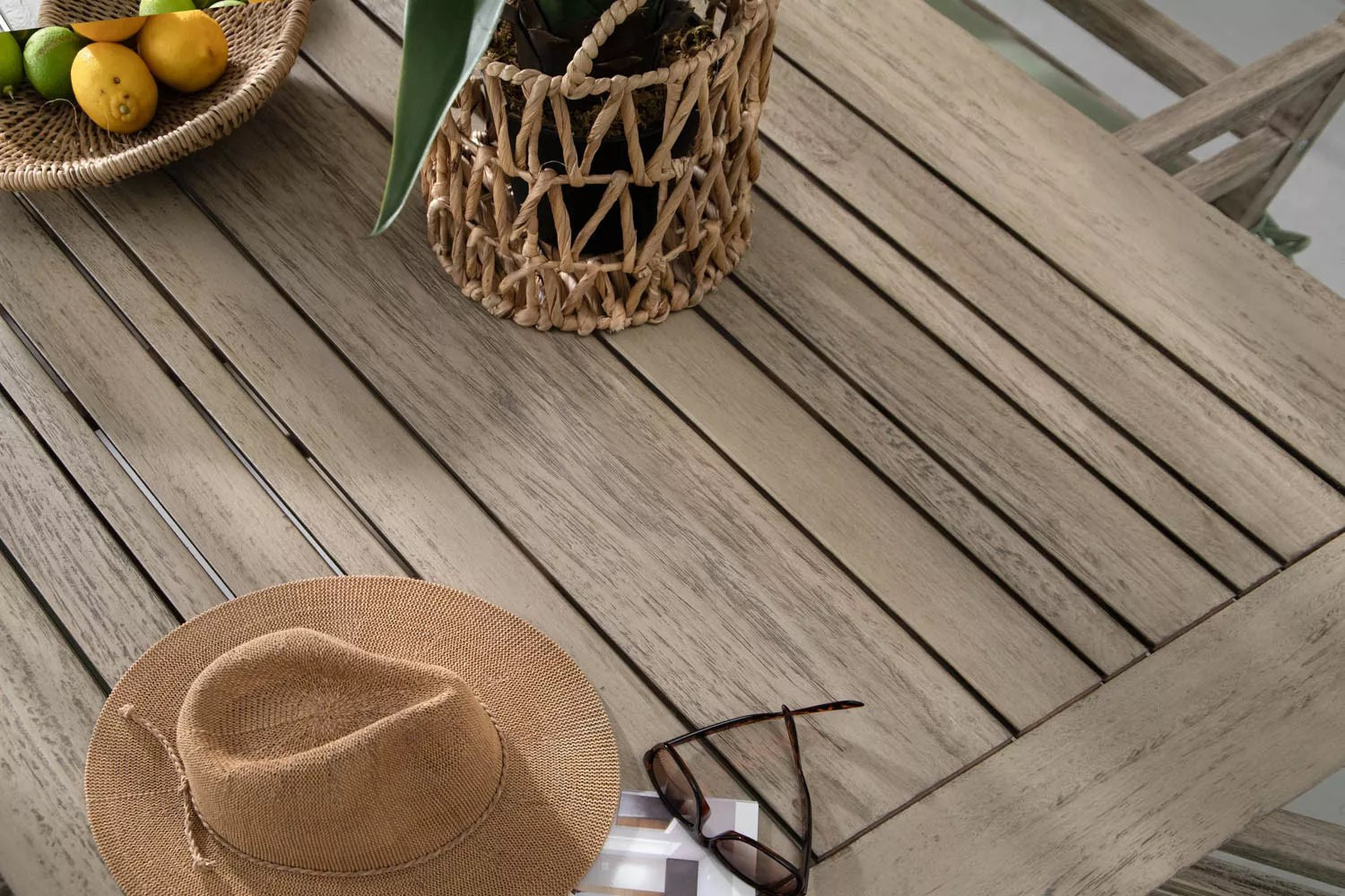Eucalyptus Wood is a hardwood that is beautiful, environmentally friendly, easy to work with and incredibly practical. This makes it an ideal material for a patio dining set. The wood's natural oils means it combats the effects of moisture and aims to be a part of the family for decades.