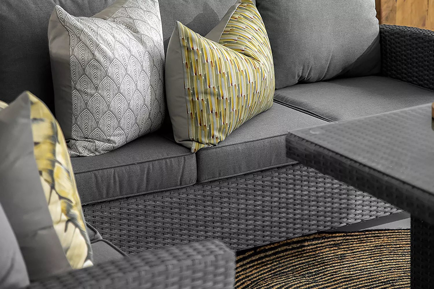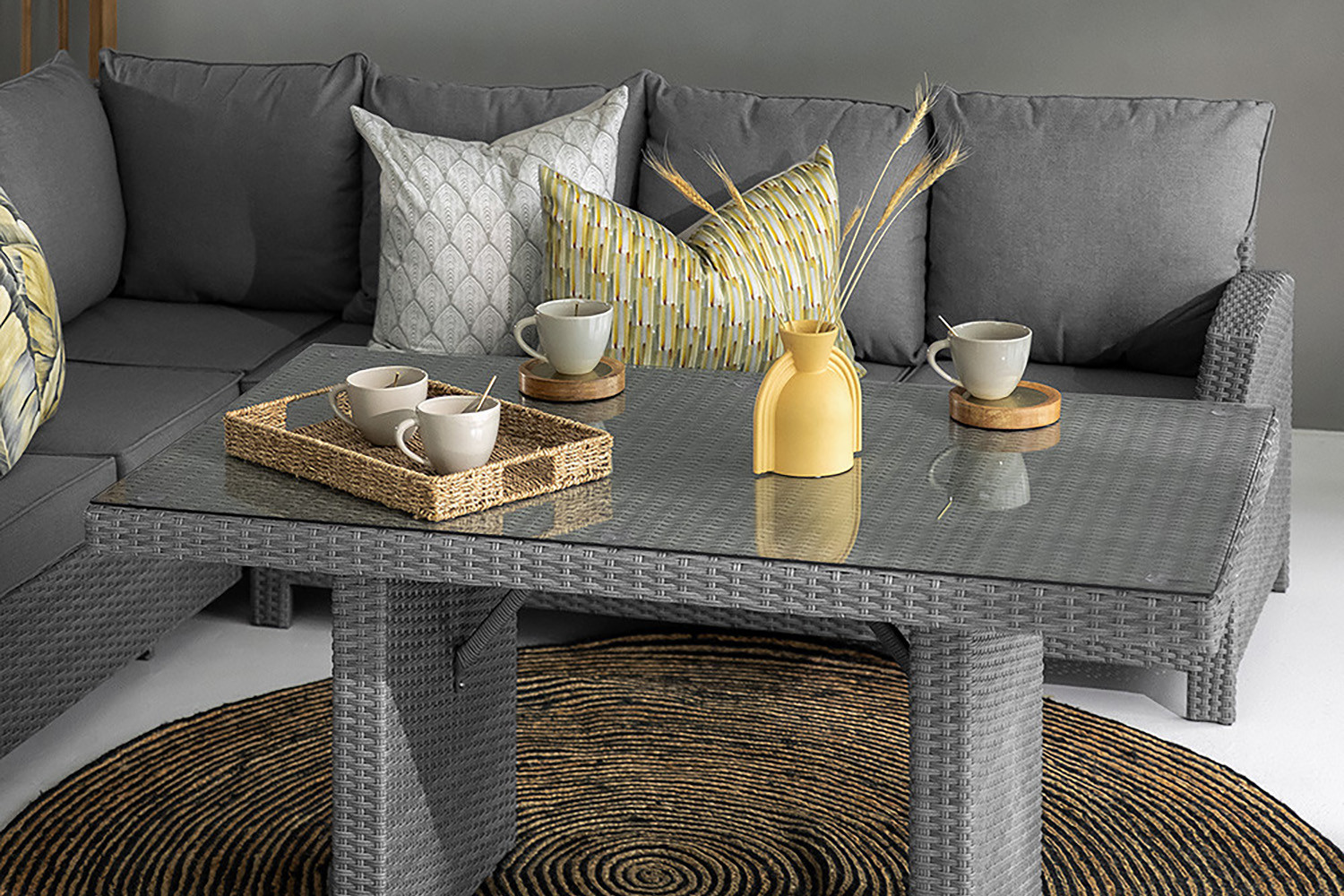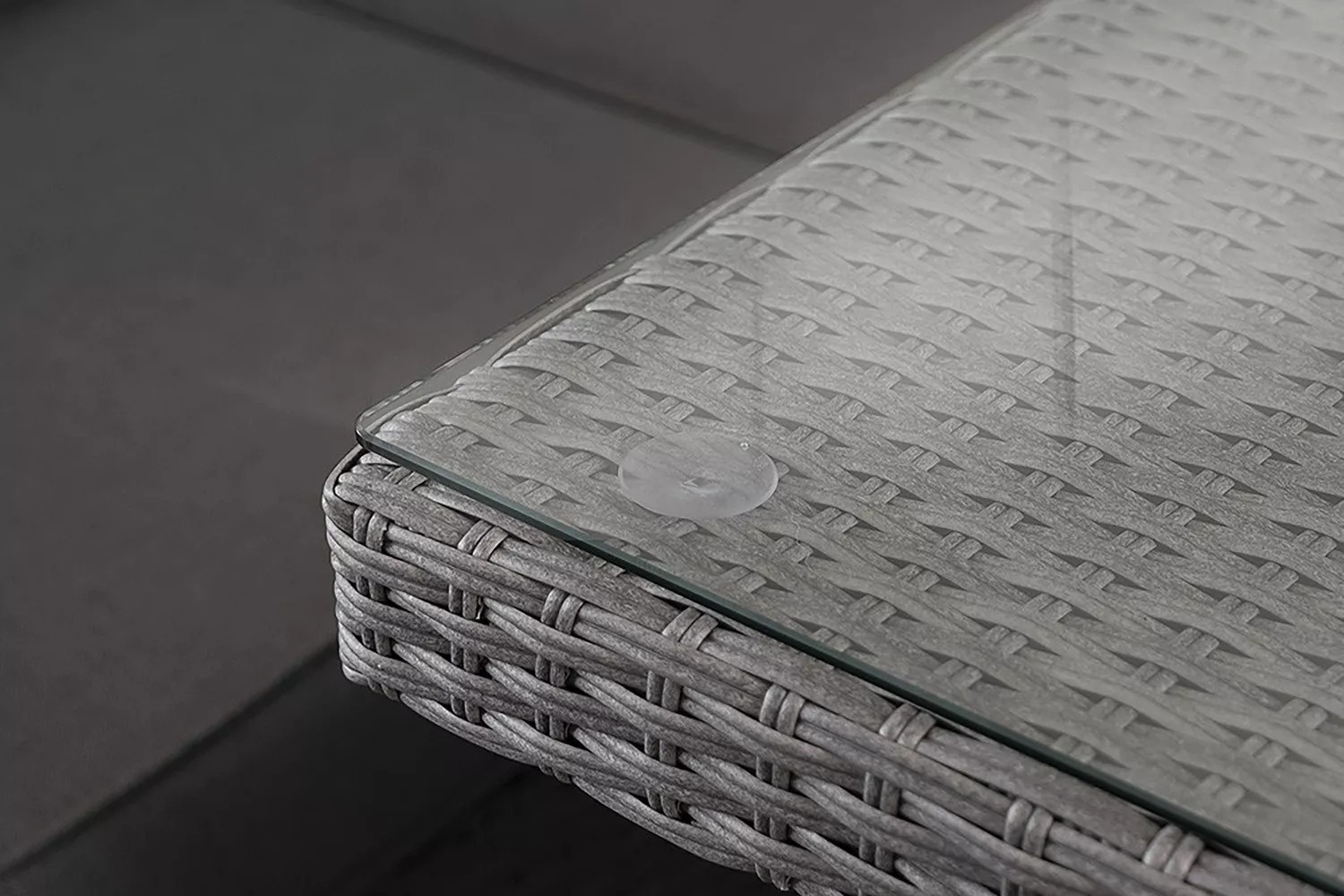 The Gianmarco Patio Set is a spacious and stylish patio spot constructed from high-density PE (Polyethylene) rattan which is eco-friendly. The Aluminium frames are strong, rust-proof and extremely durable, while ensuring the furniture remains conveniently lightweight.