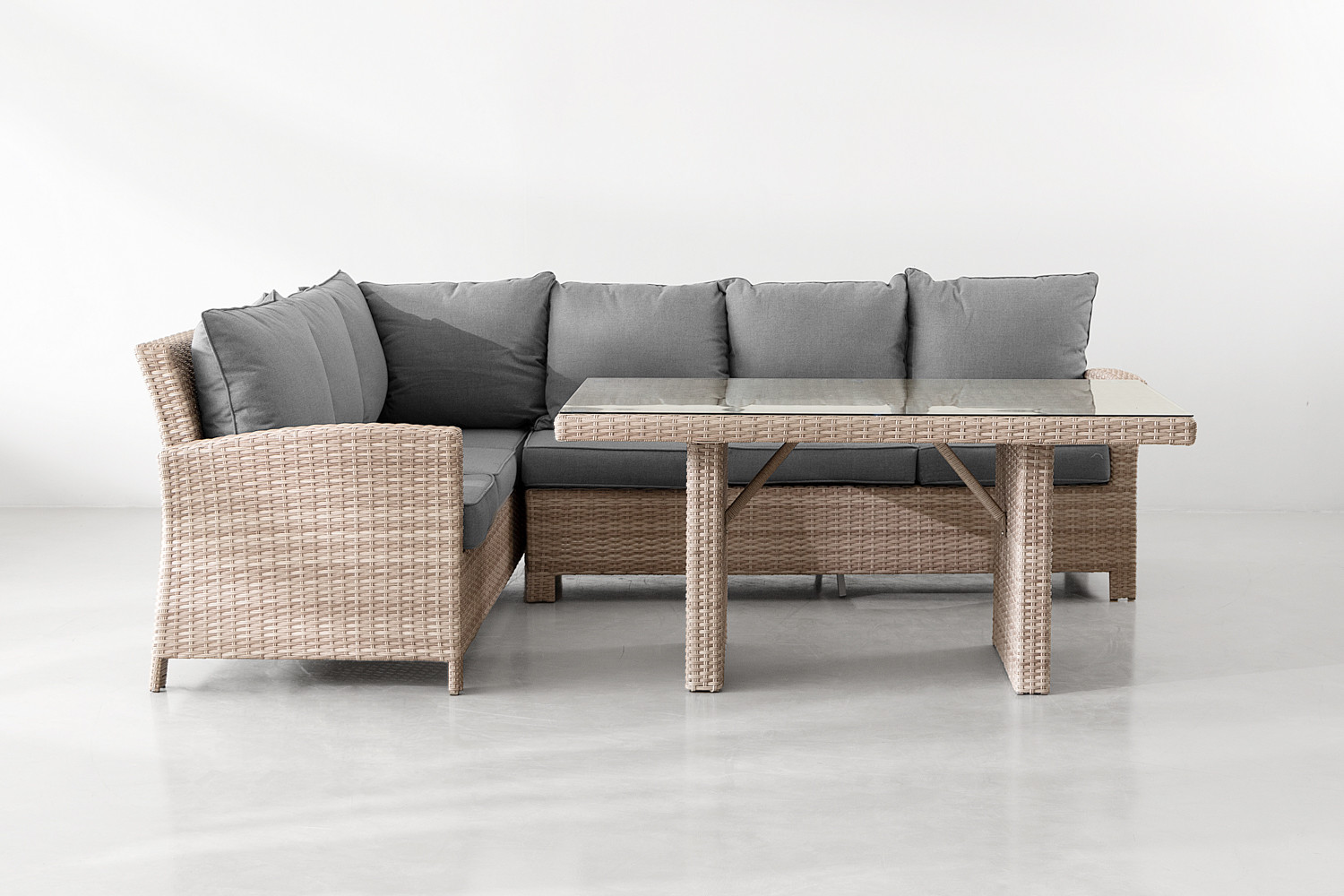 The Gianmarco Patio Set is a spacious and stylish patio spot constructed from high-density PE (Polyethylene) rattan which is eco-friendly. The Aluminium frames are strong, rust-proof and extremely durable, while ensuring the furniture remains conveniently lightweight.