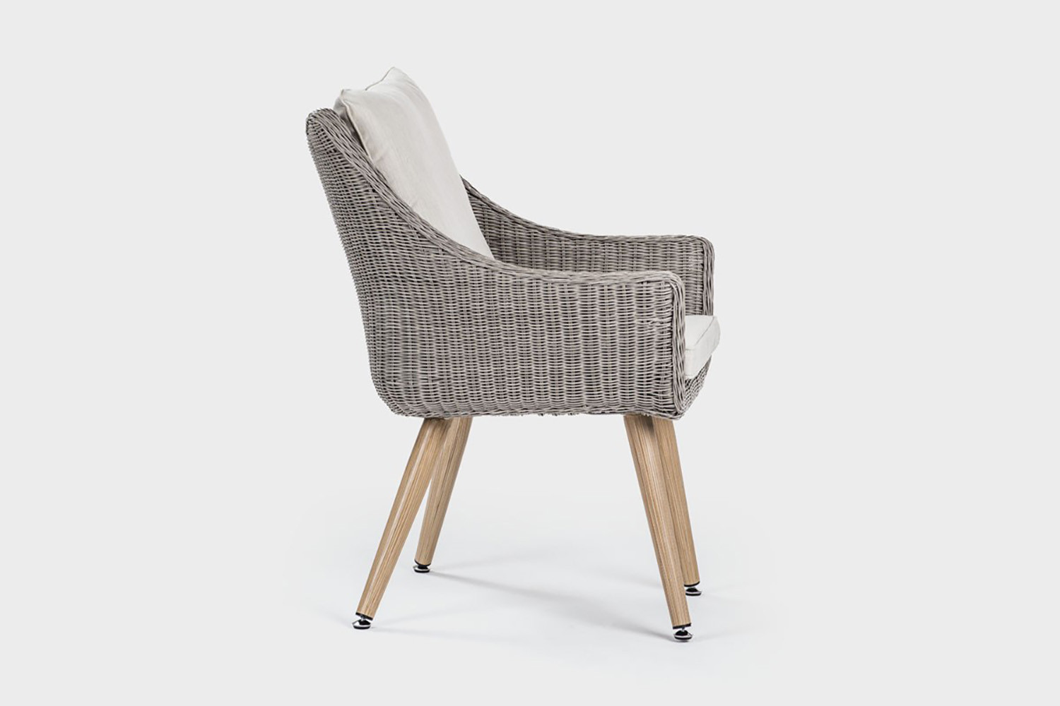 Comfortable dining chairs with removable cover seat cushions.Aluminium legs with beech wood appearance.