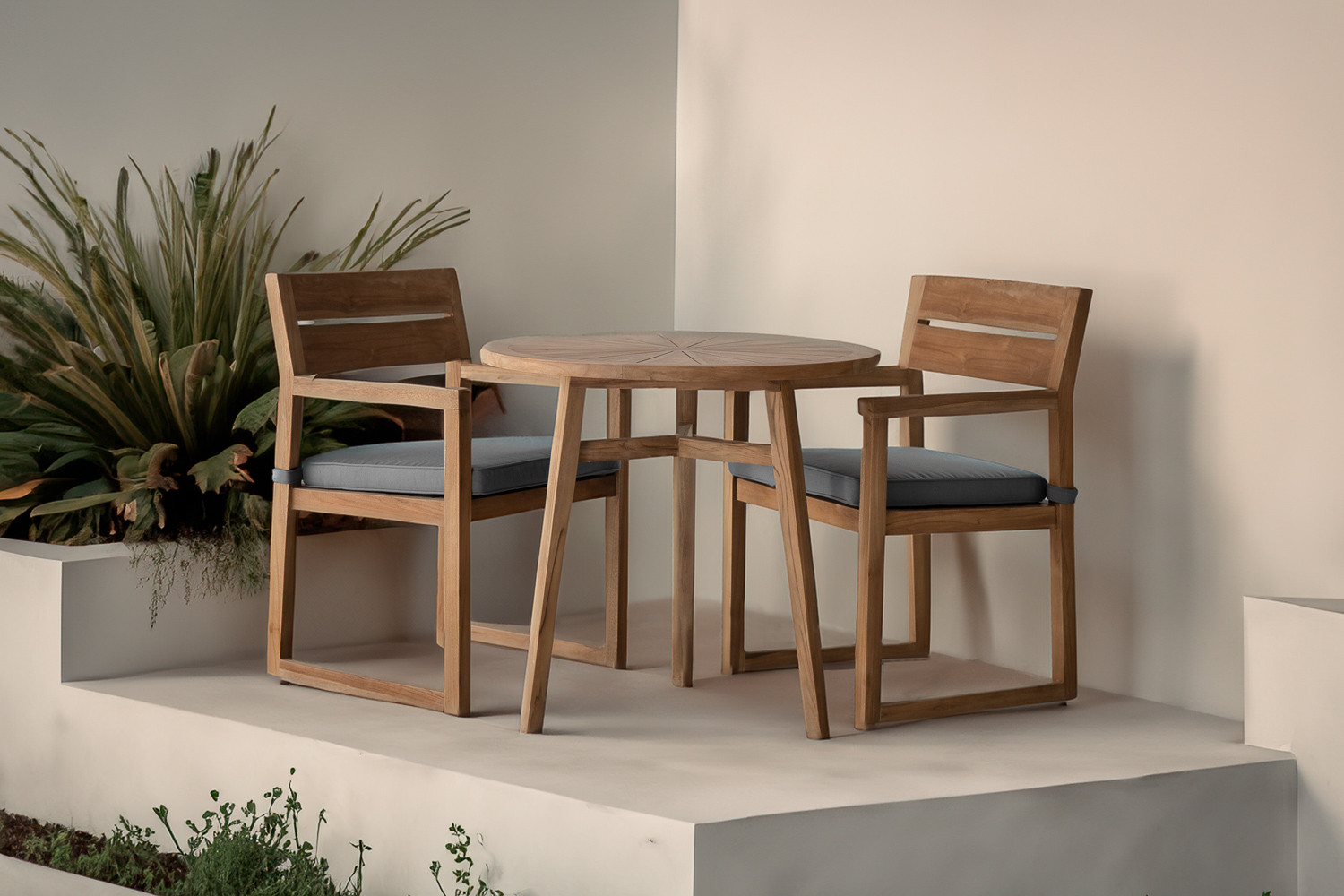 The Monaco Patio Bistro Set transforms any outdoor space into a serene retreat for discerning gatherings and tranquil moments. Elegantly constructed from fine teak, the chair’s sleek lines complement the classic round table design to create a luxurious outdoor dining experience.