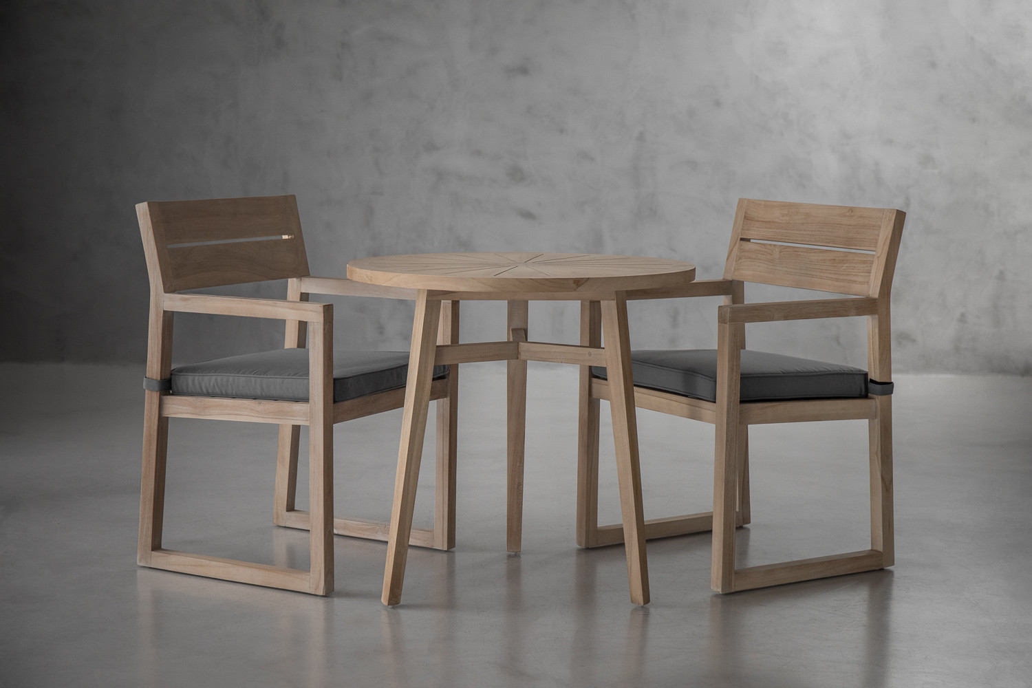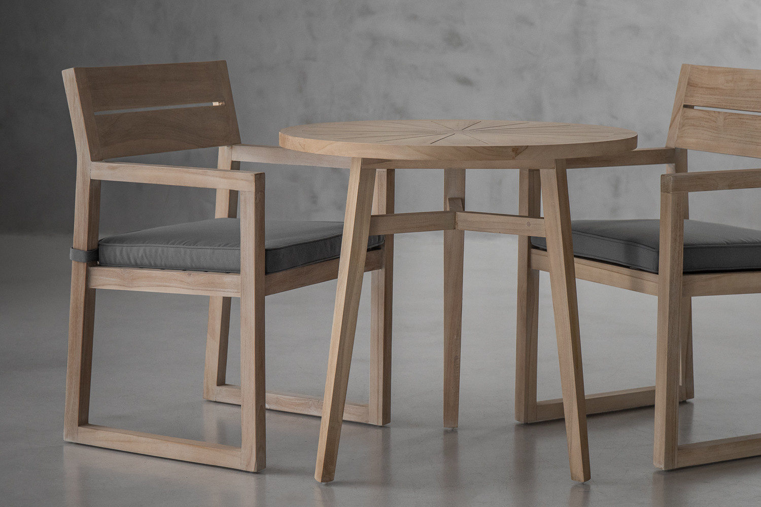 The Monaco Patio Bistro Set transforms any outdoor space into a serene retreat for discerning gatherings and tranquil moments. Elegantly constructed from fine teak, the chair’s sleek lines complement the classic round table design to create a luxurious outdoor dining experience.
