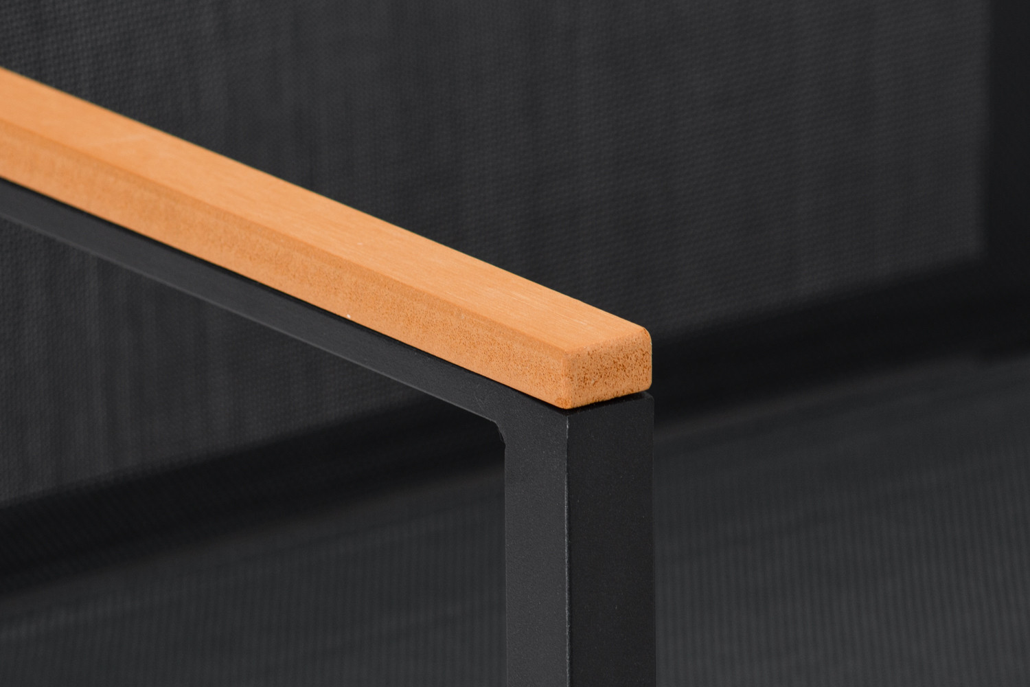 Aluminium Frame with Poly-Wood Armrests, Mesh Seats and Black Glazed Tempered Glass Table