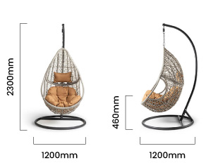 Turn your patio into your personal sanctuary and sink into the cradling comfort of the Addilyn Hanging Chair. Designed for ultimate relaxation and durability, the contemporary style Addilyn chair features weather & UV resistant PE rattan with comfortable polyester cushion included. The Addilyn is set on a robust powder-coated metal frame for stability.