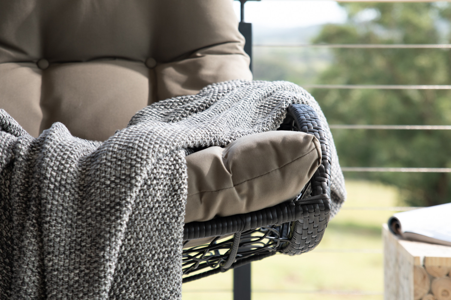 Add a relaxed and distinctive look to your outdoor space with the Jasper Hanging Chair. This eye-catching contemporary design features a durable steel frame and woven basket made from high quality PE rattan, providing an elemental, nature-inspired feel. The chair includes a built-in drinks holder and comfortable cushions upholstered in high quality polyester fabric.