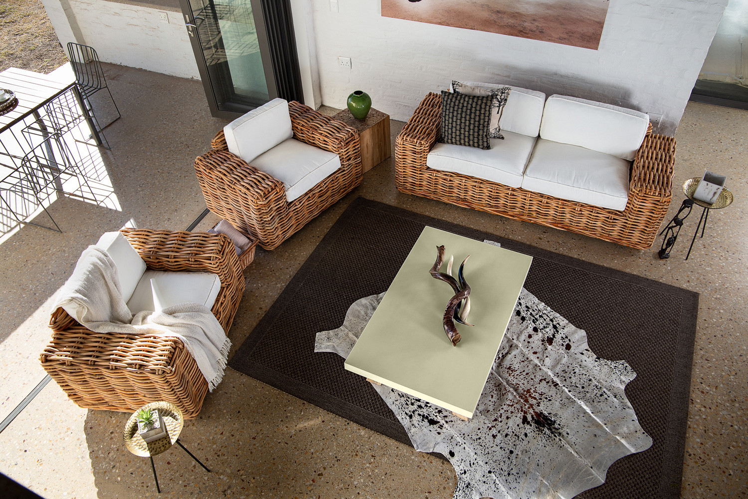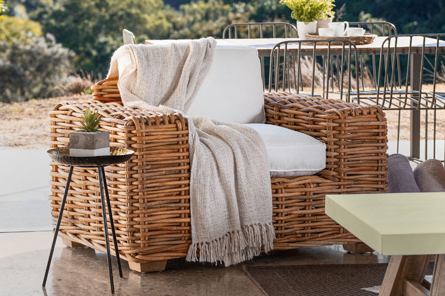Add a relaxed and natural look to your patio or indoor entertainment area with the Portland Patio Lounge Set. This beautiful ensemble, consisting of a 3-seater patio couch with two patio armchairs, features a rustic large weave natural CL rattan, expertly handwoven in Indonesia, and is finished with plush cushions upholstered in high-quality polyester with removable covers. An enviable addition to any contemporary space.