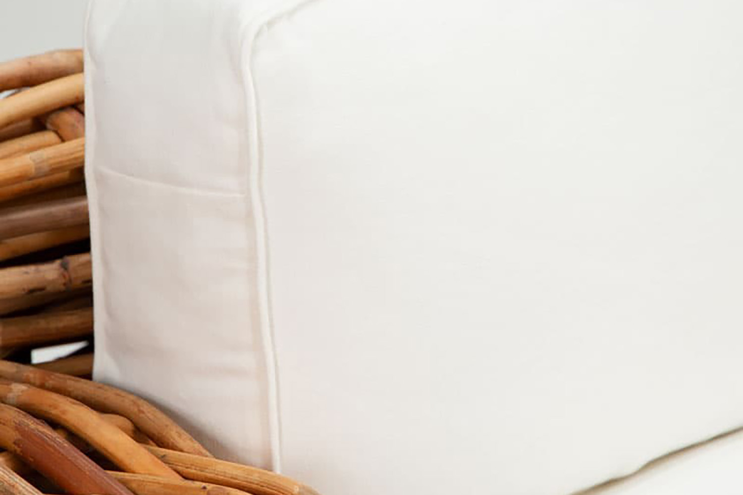 Handwoven in Indonesia, the set features natural full CL rattan which is beautifully complemented by champagne-colored cushions, with convenient removable covers made from water-resistant polyester.