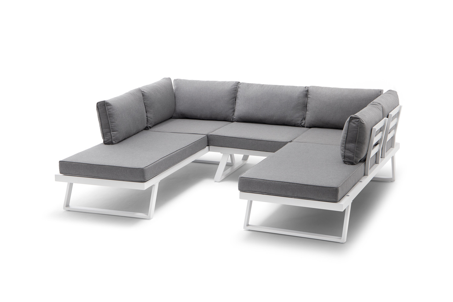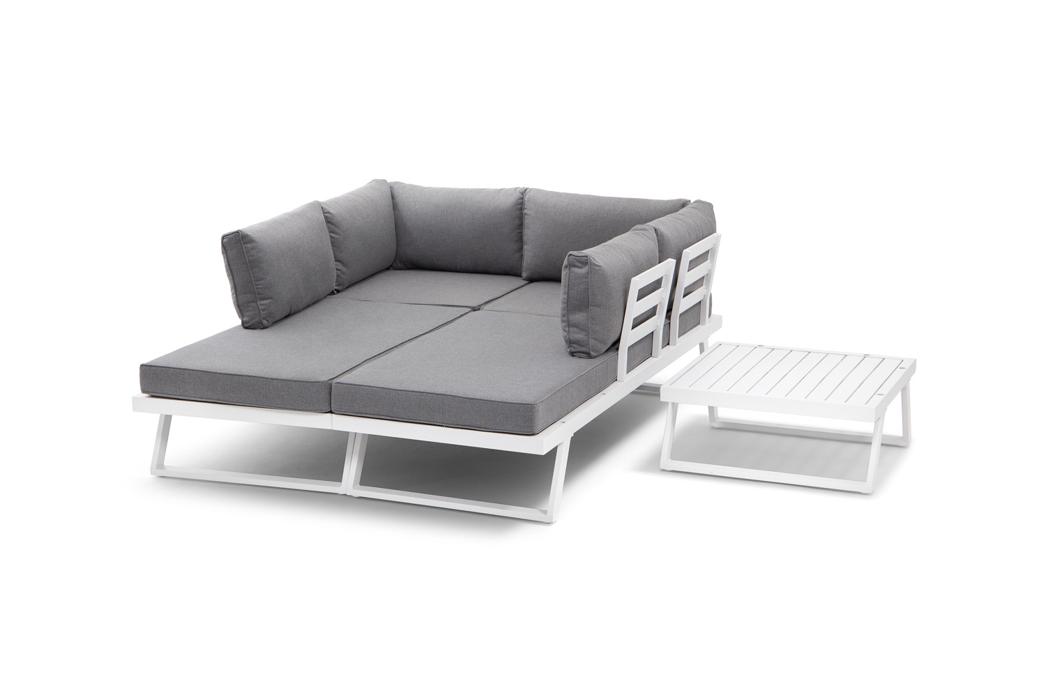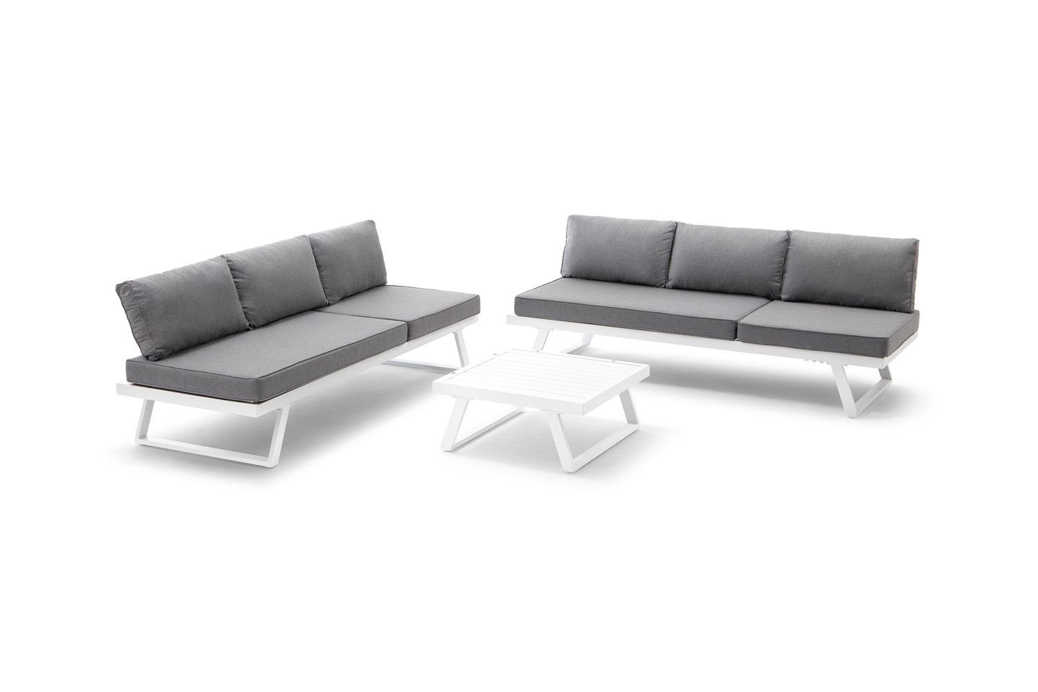 - The slatted aluminium set offers combinations of traditional lounge suites, modular configurations or daybed functions.