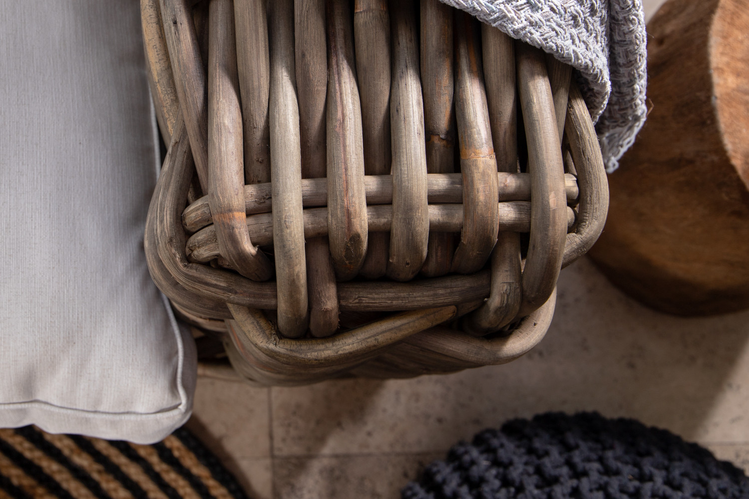 Rustic style large-weave rattan complemented by cool, sumptuous champagne-coloured cushions gives this piece a beautifully natural and laid back feel that’s guaranteed to help you unwind in stylish luxury.