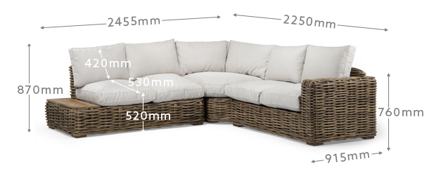 2455mm (L) x 2250mm (L) x 915mm (W) x 870mm (H) | Seat Height: 520mm | Seat Depth: 530mm
