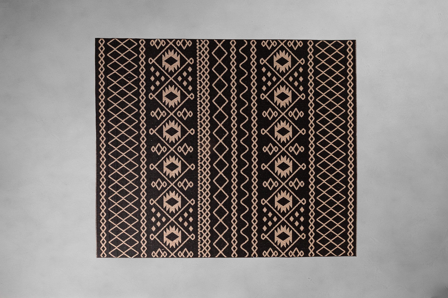 Accentuate your space with the Ziyah Rug, a stylish and durable piece that’s perfect for both indoor and outdoor use. Featuring an intricate weave in striking black and natural tones, this rug brings contemporary, Bolognese-inspired design to life. The eye-catching patterns and stunning details of this Turkish creation make it a decorative focal point for modern homes.