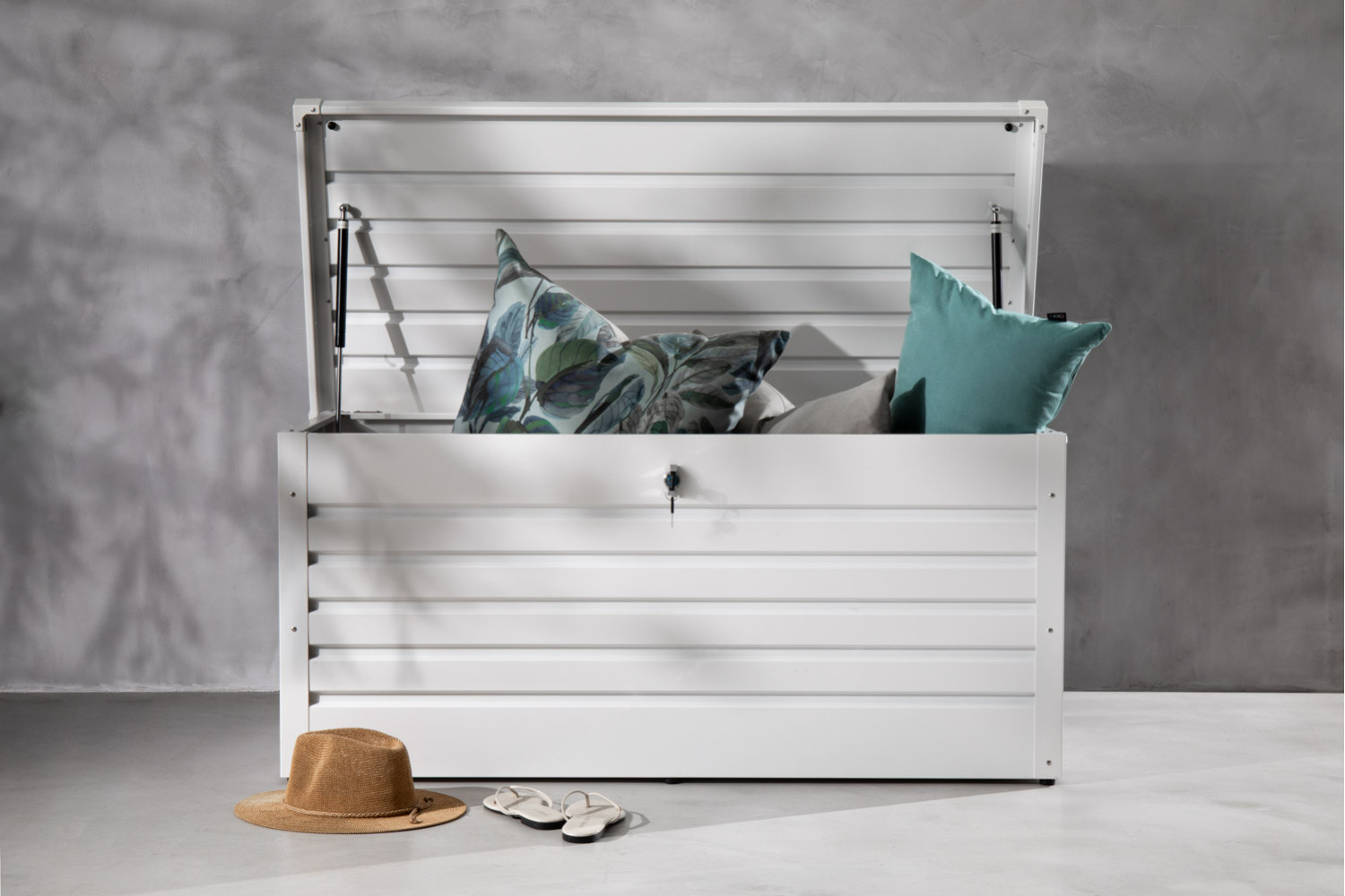 Keep your pool and patio area uncluttered with the Callum Pool Storage Box. Made from galvanised mild steel, this idyllic storage solution has room for everything from patio lounge cushions to pool equipment. It’ll stand up to the elements and store all you need.