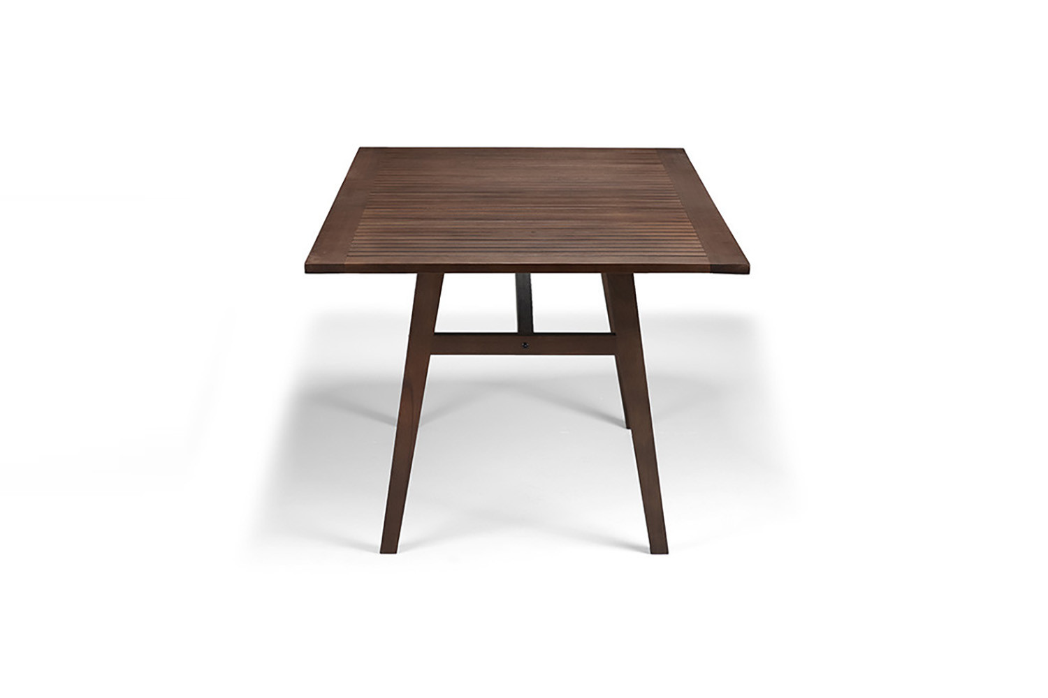 The exquisite Avalon Patio Dining Table is a warm and relaxing table, ideal for intimate outdoor dining. Crafted from environmentally friendly eucalyptus wood with a beautiful walnut brown stain, this patio table features an elegant design with a paneled rectangular shape for a cool and casual setting.