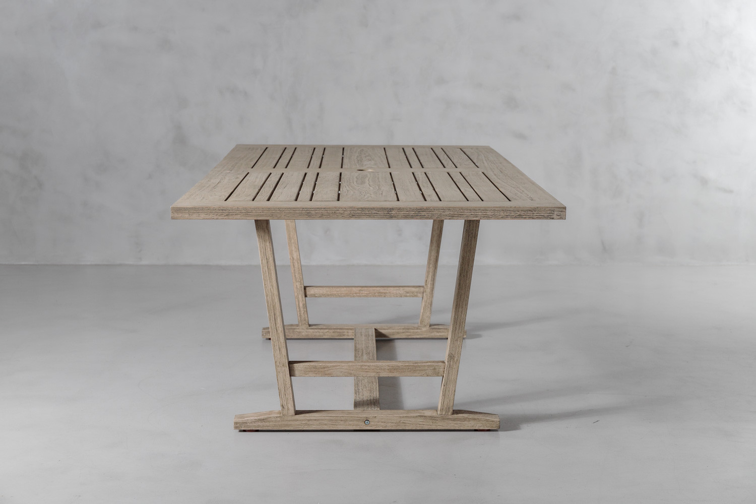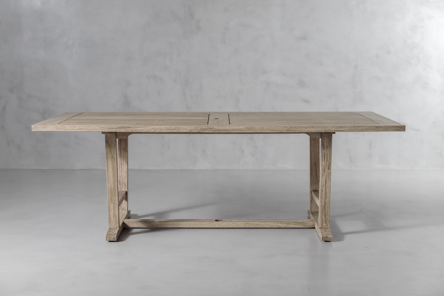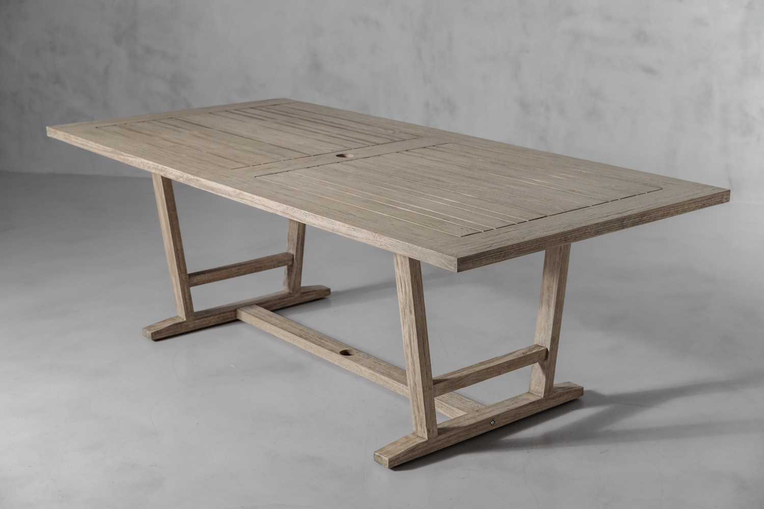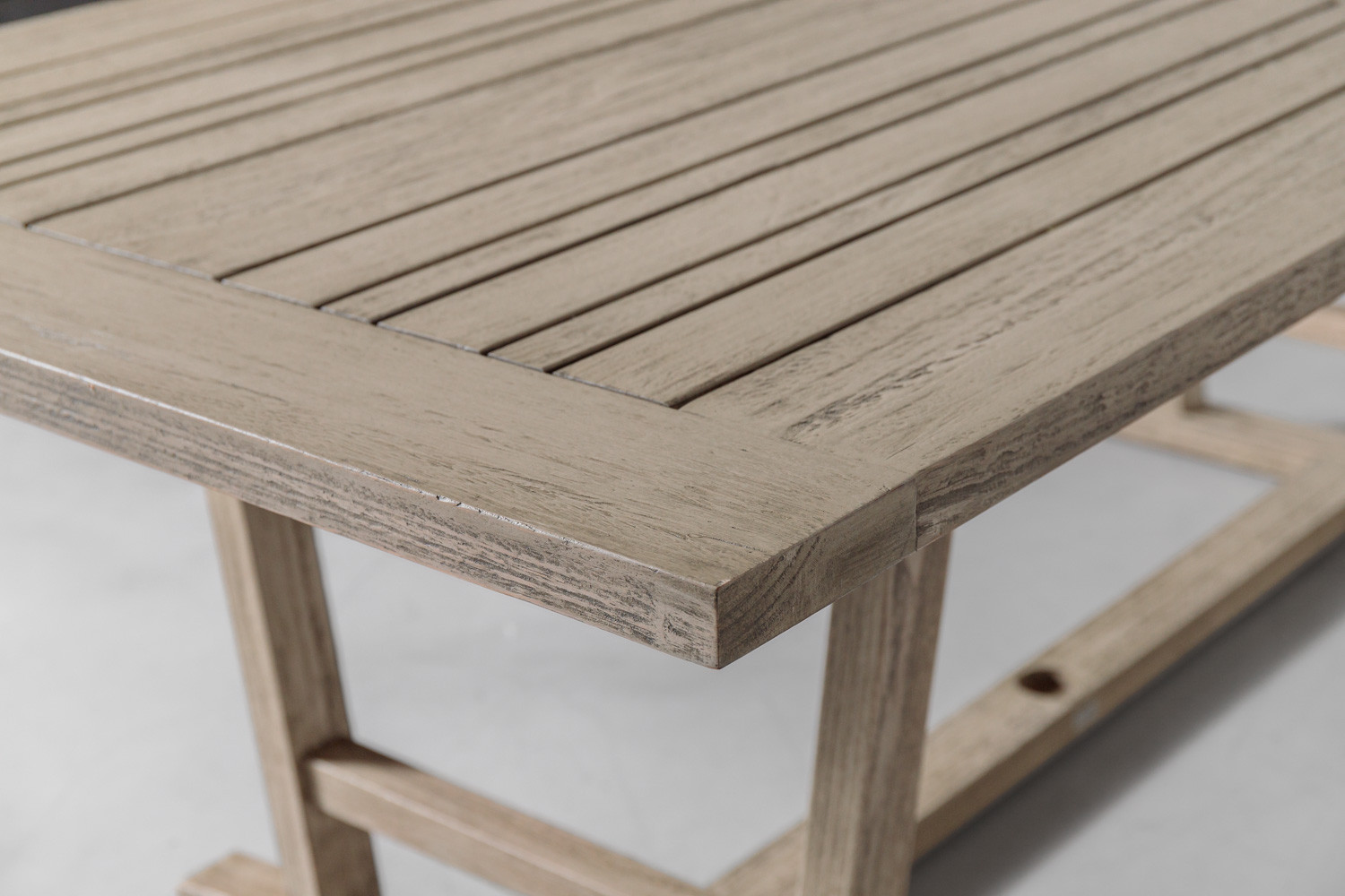 The Christofina Patio Dining Table is a gorgeous outdoor dining table crafted from 100% FSC Certified Eucalyptus wood with a beautiful rustic finish, maintaining the woods natural beauty.