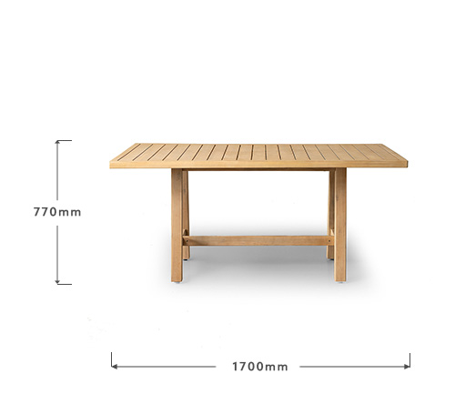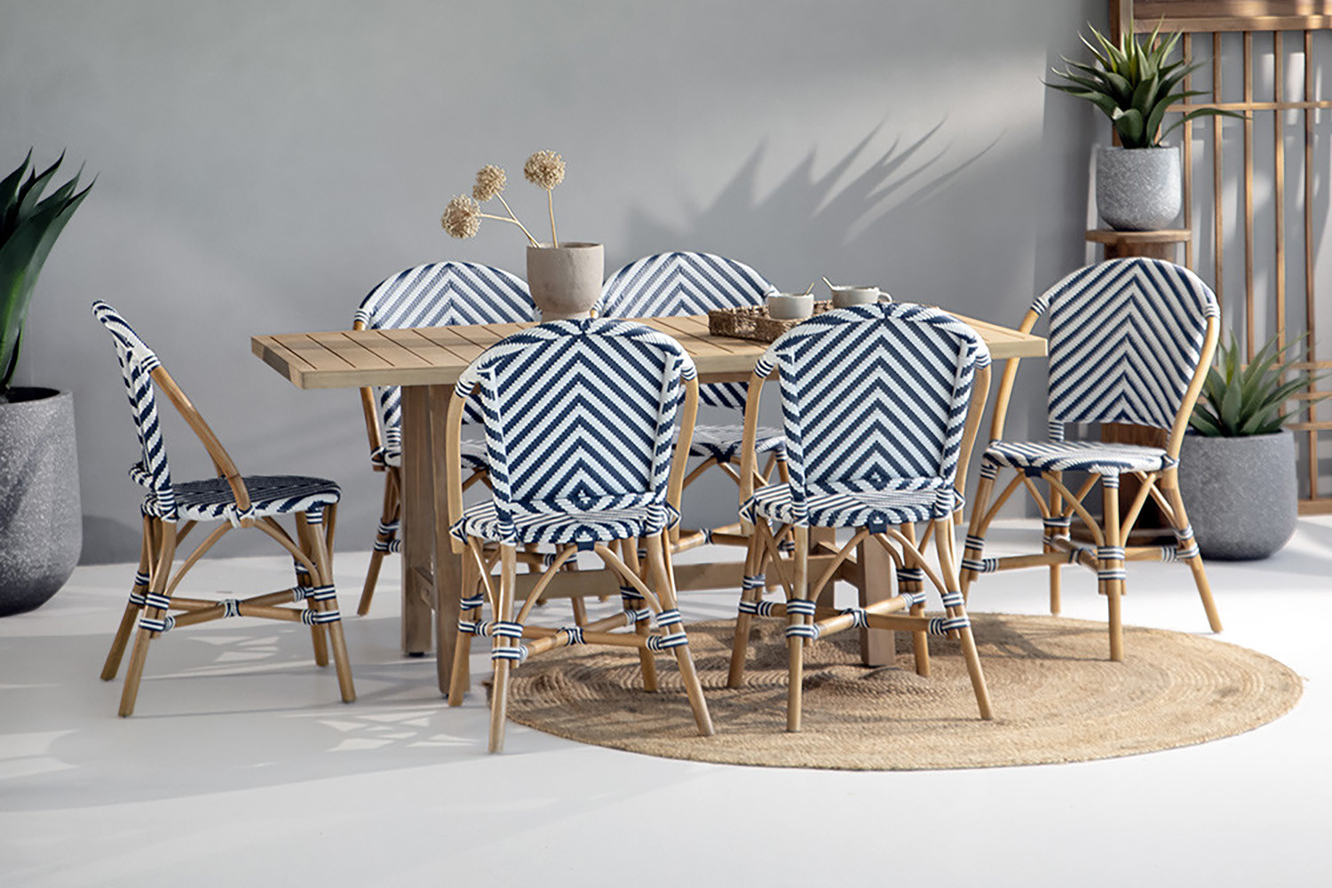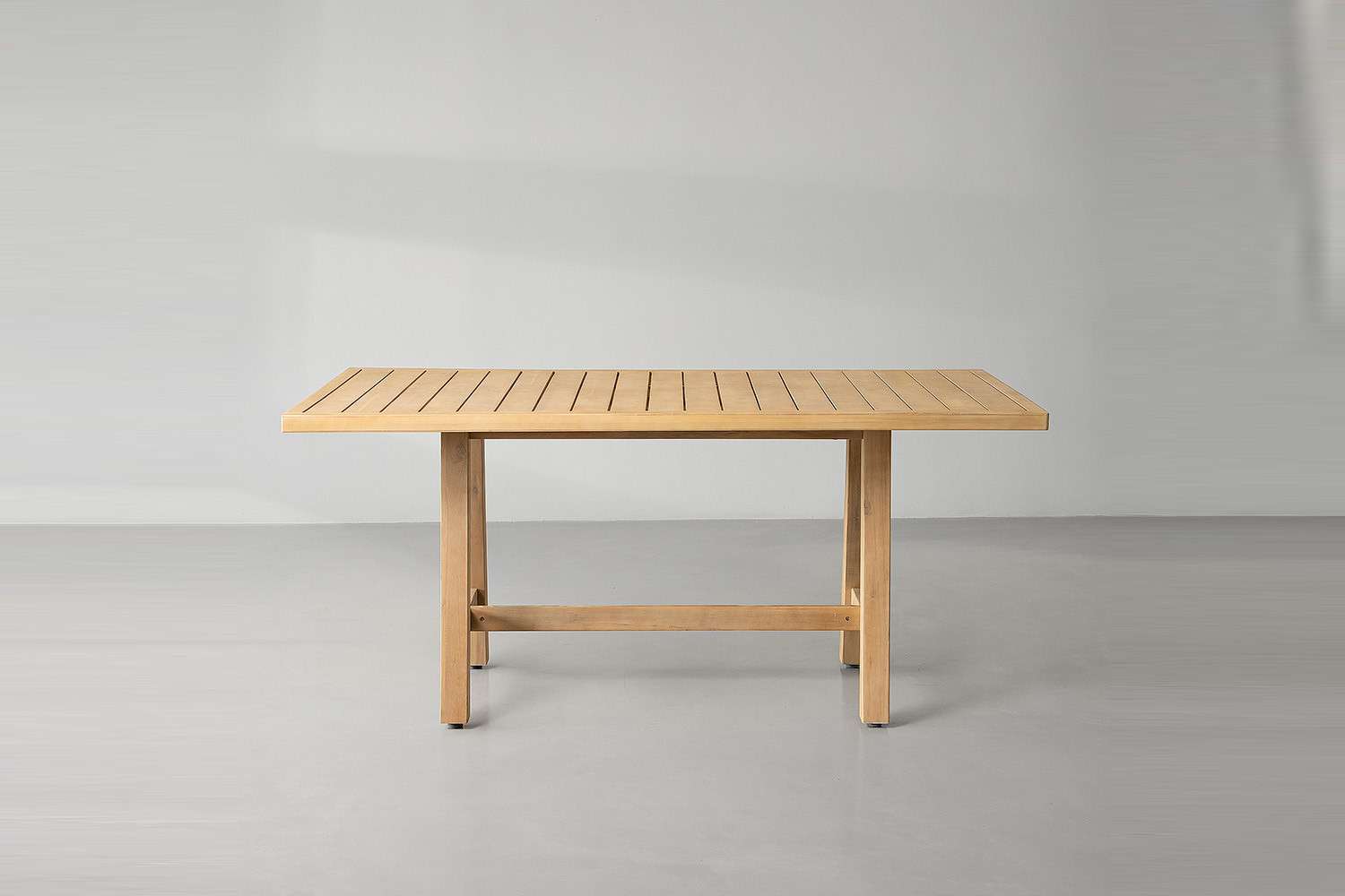 The Luciana Dining Table is crafted from Acacia wood with a light, washed finish. This beautifully finished table presents the perfect addition to your patio dining space.