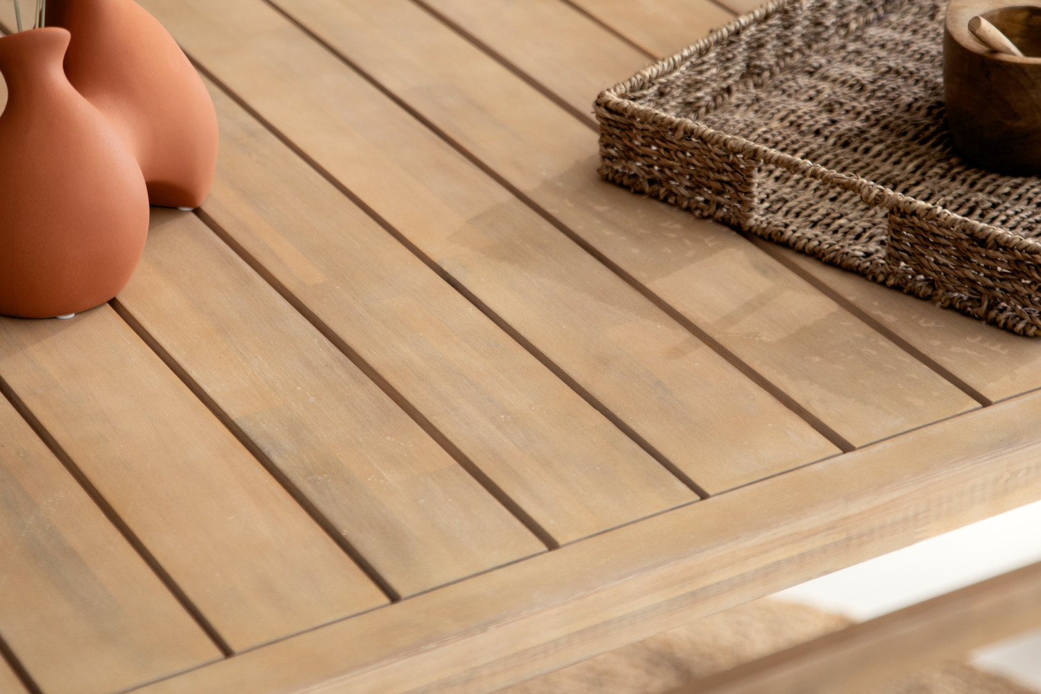The Luciana Dining Table is Crafted from Acacia wood with a light, washed finish. This beautifully finished table presents the perfect addition to your patio dining space.