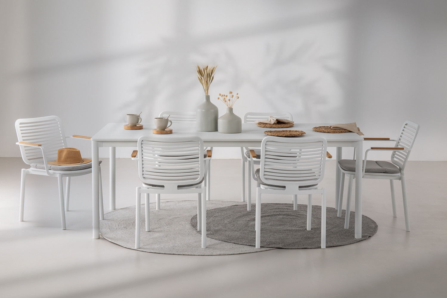 Take a seat and savour the stunning craftsmanship of the Venice Patio Dining Table. The clean lines and aluminium design give the table a timeless appeal while ensuring its fit to host any outdoor occasion. Add luxury to your alfresco dining experience with the Venice.