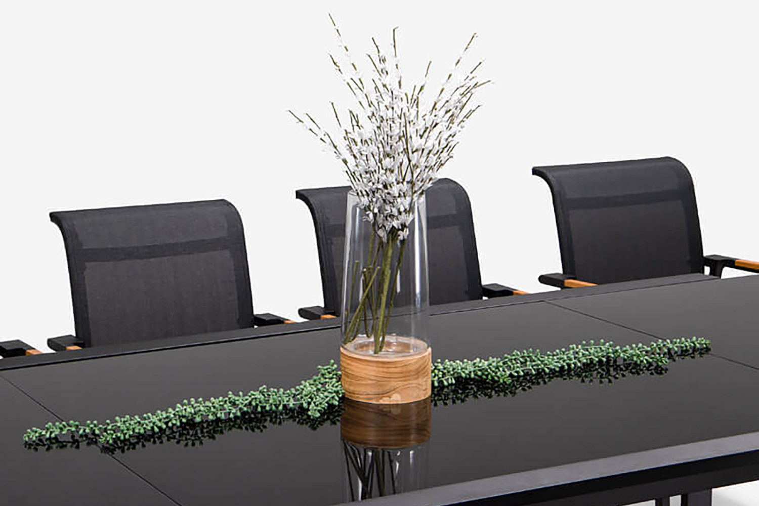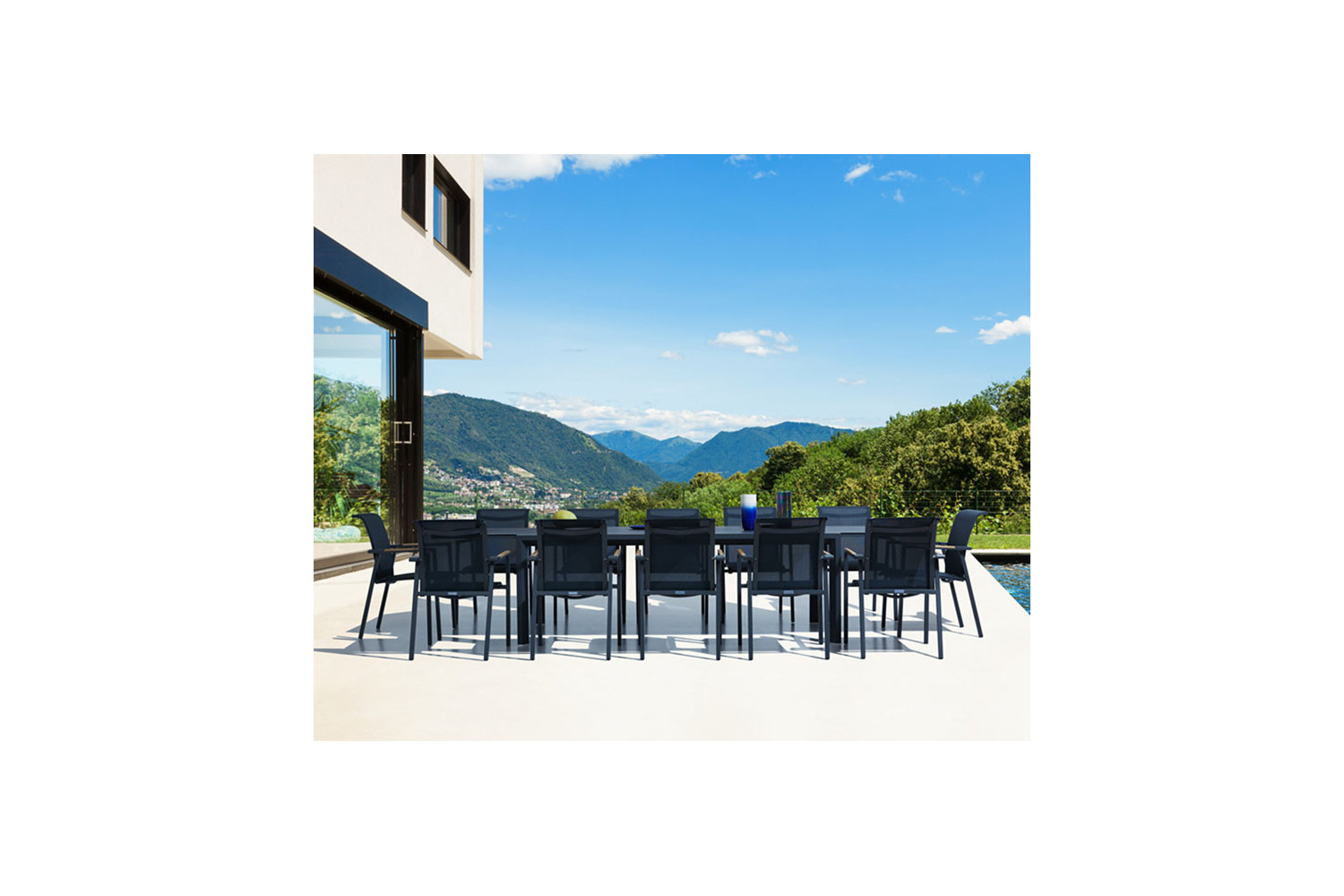 Sleek and sophisticated, the Villora Patio Dining Table is impressive both in style and proportions, with the option to extend from an 8-seater to a 12-seater table. Featuring a high-quality aluminium frame and black glazed tempered glass top, this table boasts superb durability and low maintenance, making it an ideal addition to upgrade your outdoor space.