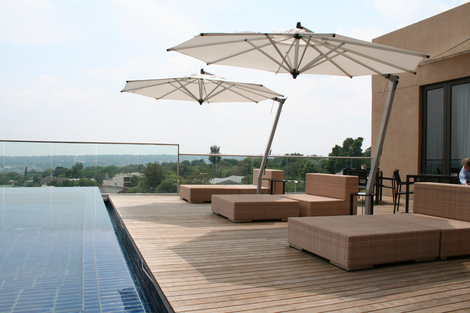Attached to a free-standing mast and well anchored base, the Cantilever design optimises shade space and allows you to position the umbrella in whatever way suits your seating, your shade needs and your fancy.