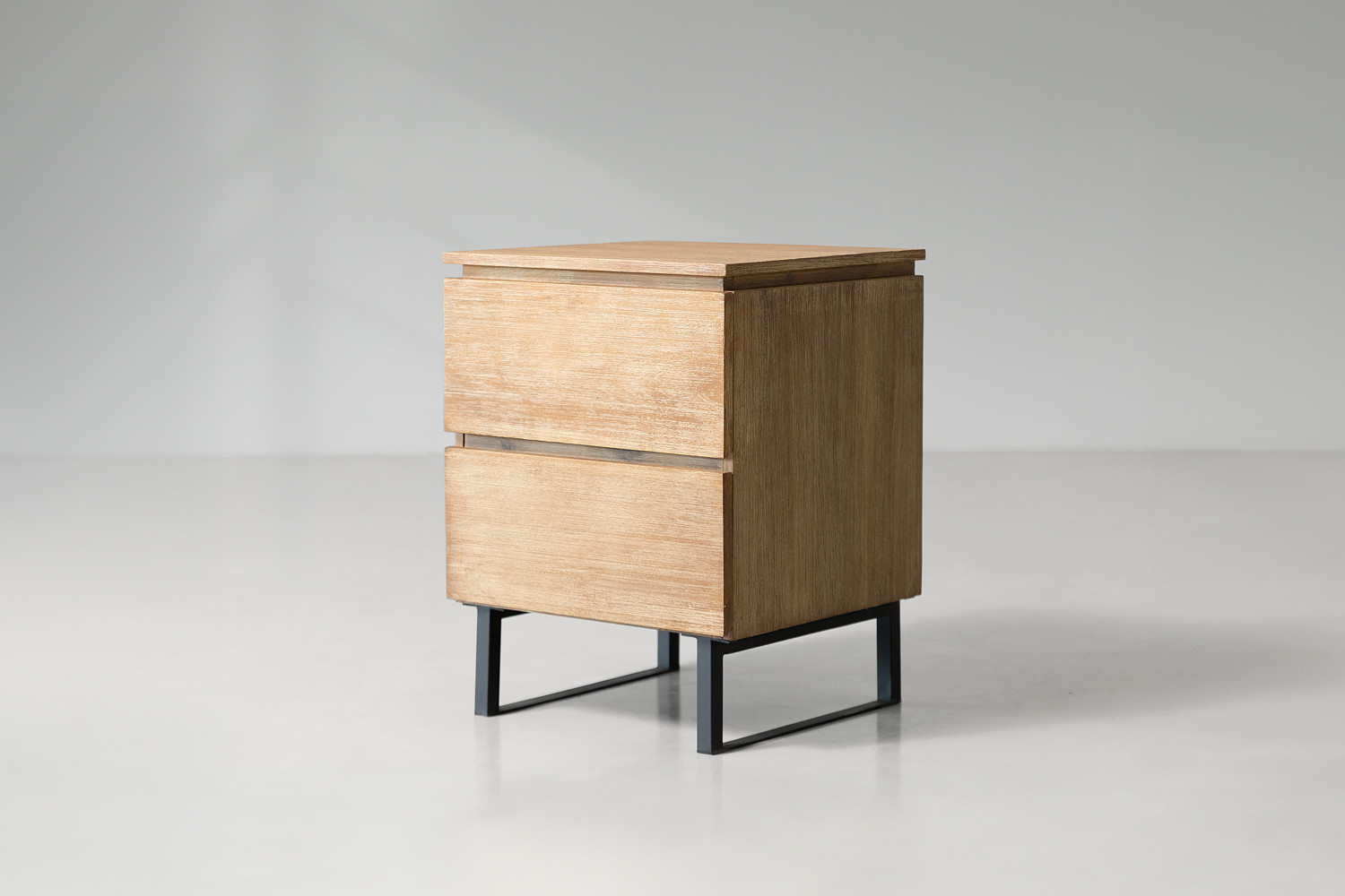The Catalan Pedestal embodies contemporary class. This slight bedside pedestal combines wire brushed Acacia wood and powder coated steel legs to present a warm yet modern bedside piece.