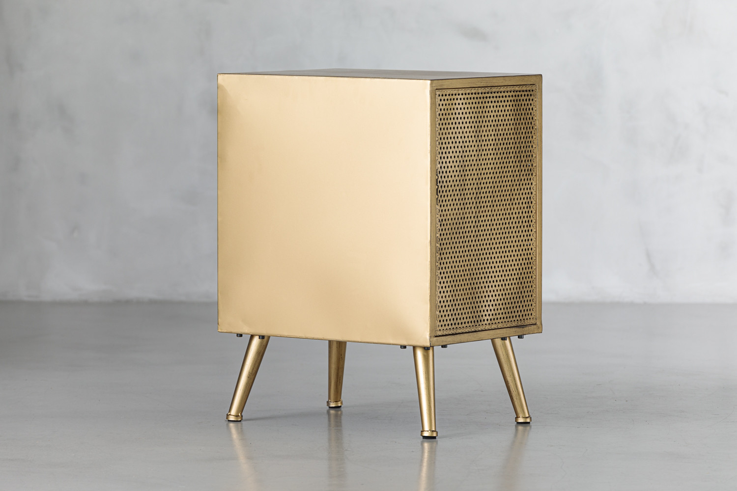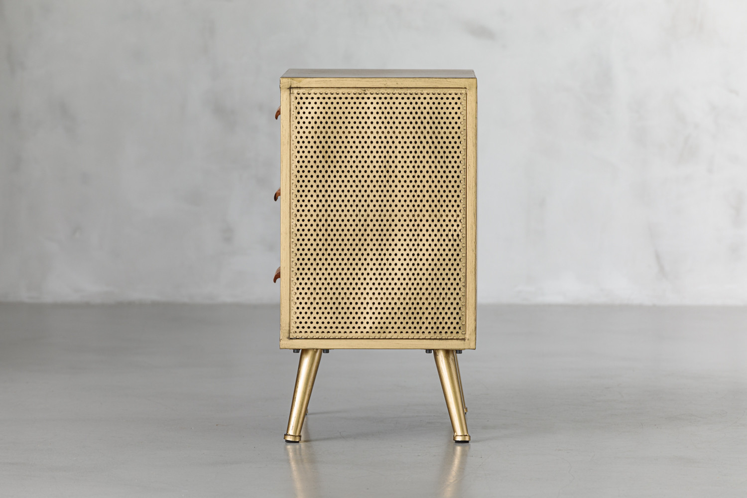 Add a unique style statement to your bedroom with the Eastern-inspired Danya pedestal. This piece is defined by its combination of eye-catching design elements, featuring wooden fretwork and metal frame, with gold finish. The Danya Pedestal is the perfect way to infuse a little glam into your personal space.