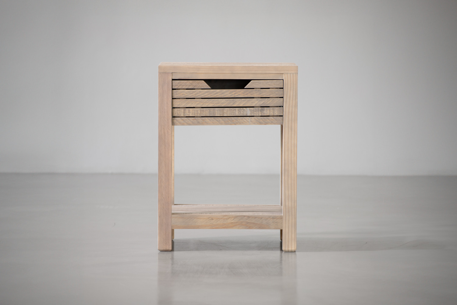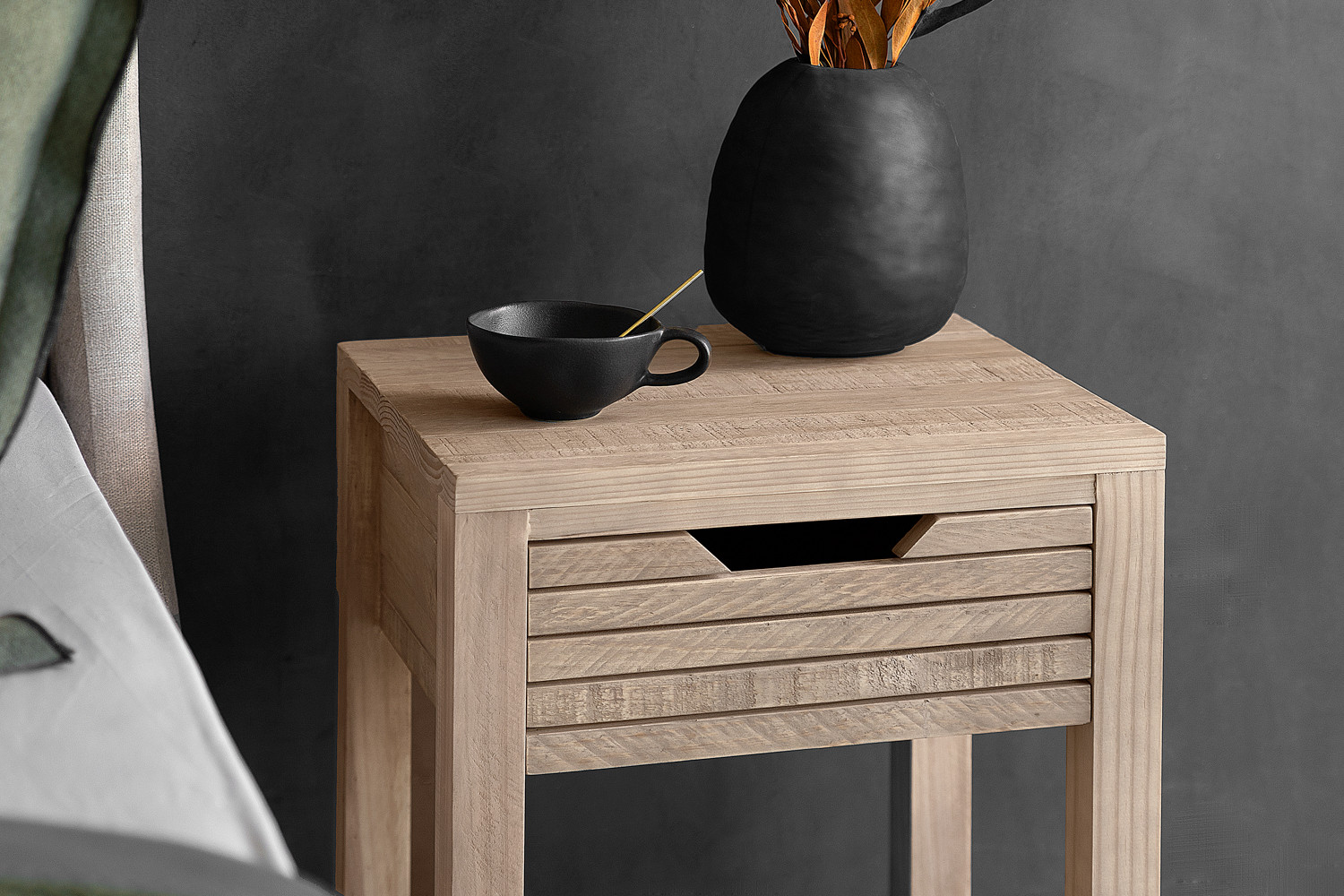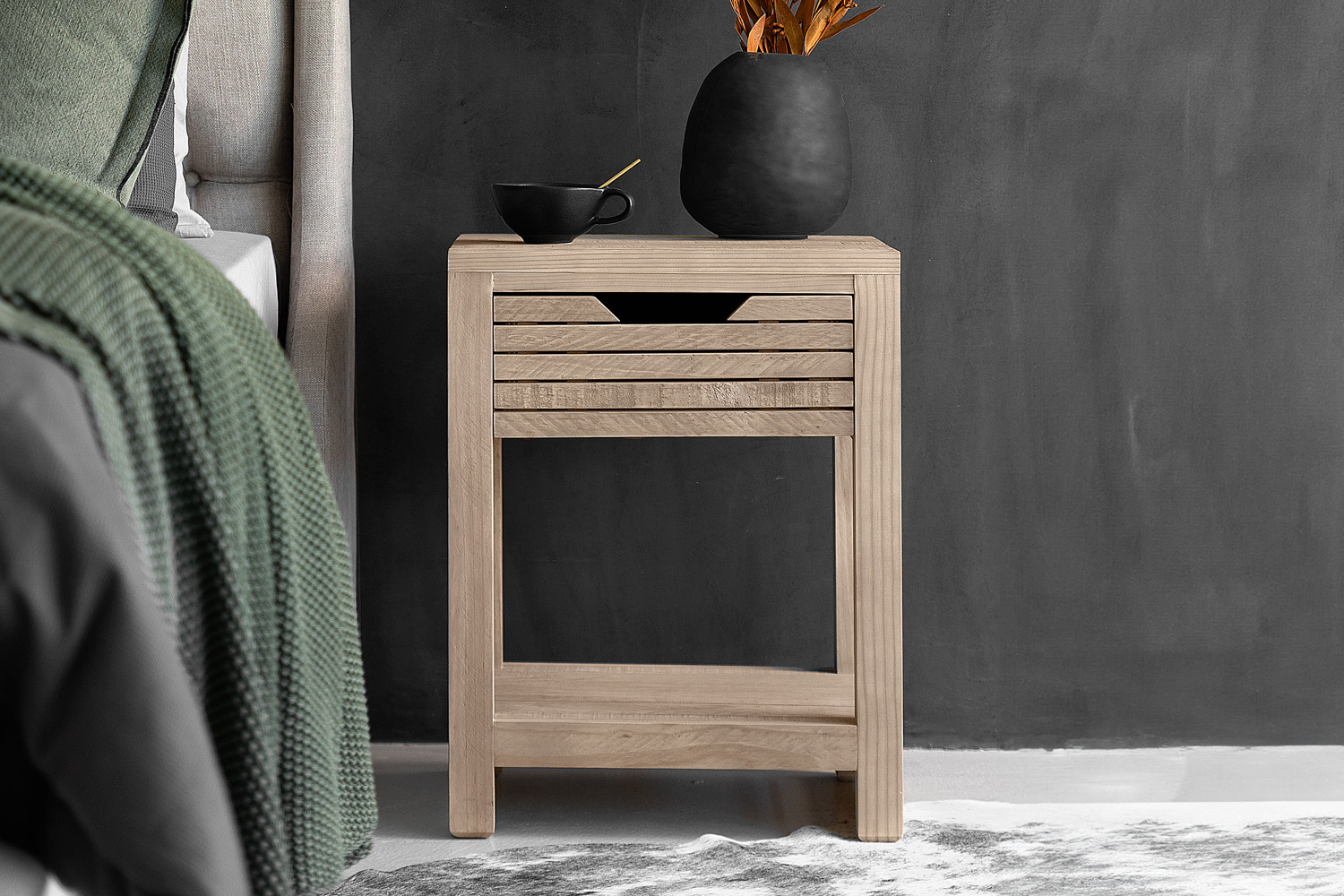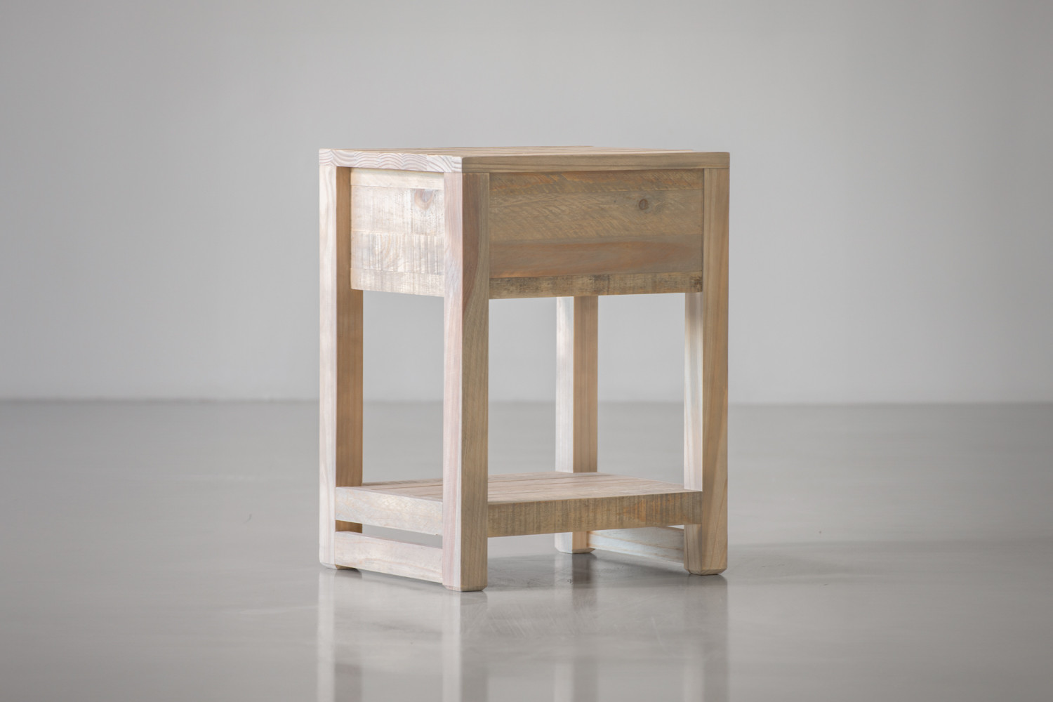 The Hackney Pedestal welcomes a charming single drawer pedestal to your bedroom. Crafted from Radiata Pine wood, this bedside table offers plenty of drawer space as well as an extra bottom shelf for plenty of storage. this pedestal features a sleek and elemental design that draws focus to the natural beauty and integrity of the wood, with a distinctive finish.