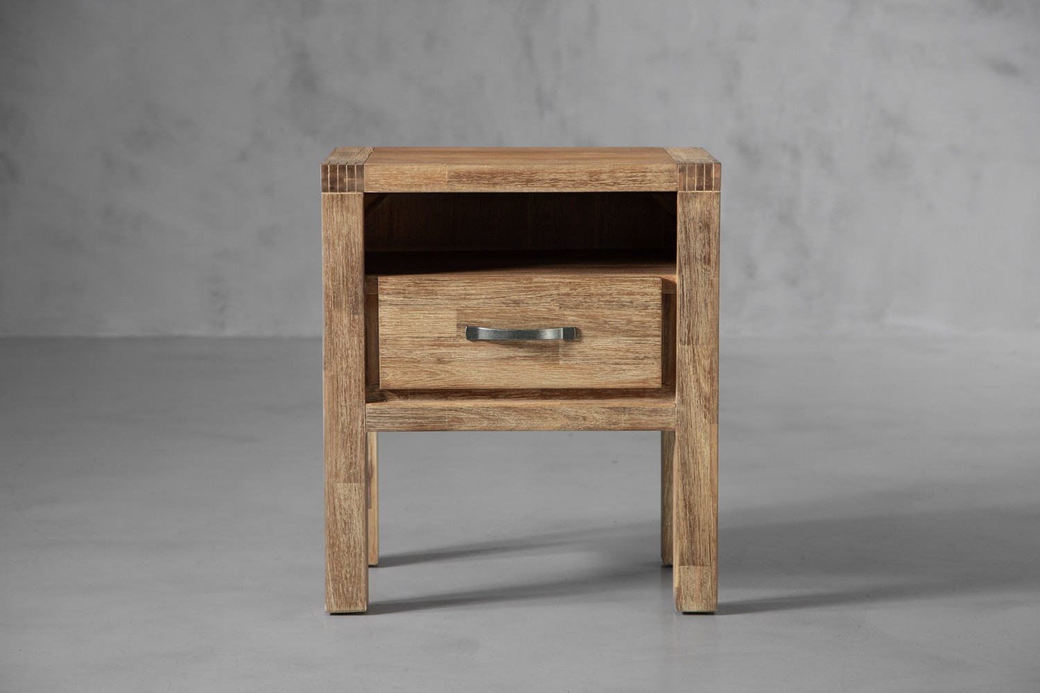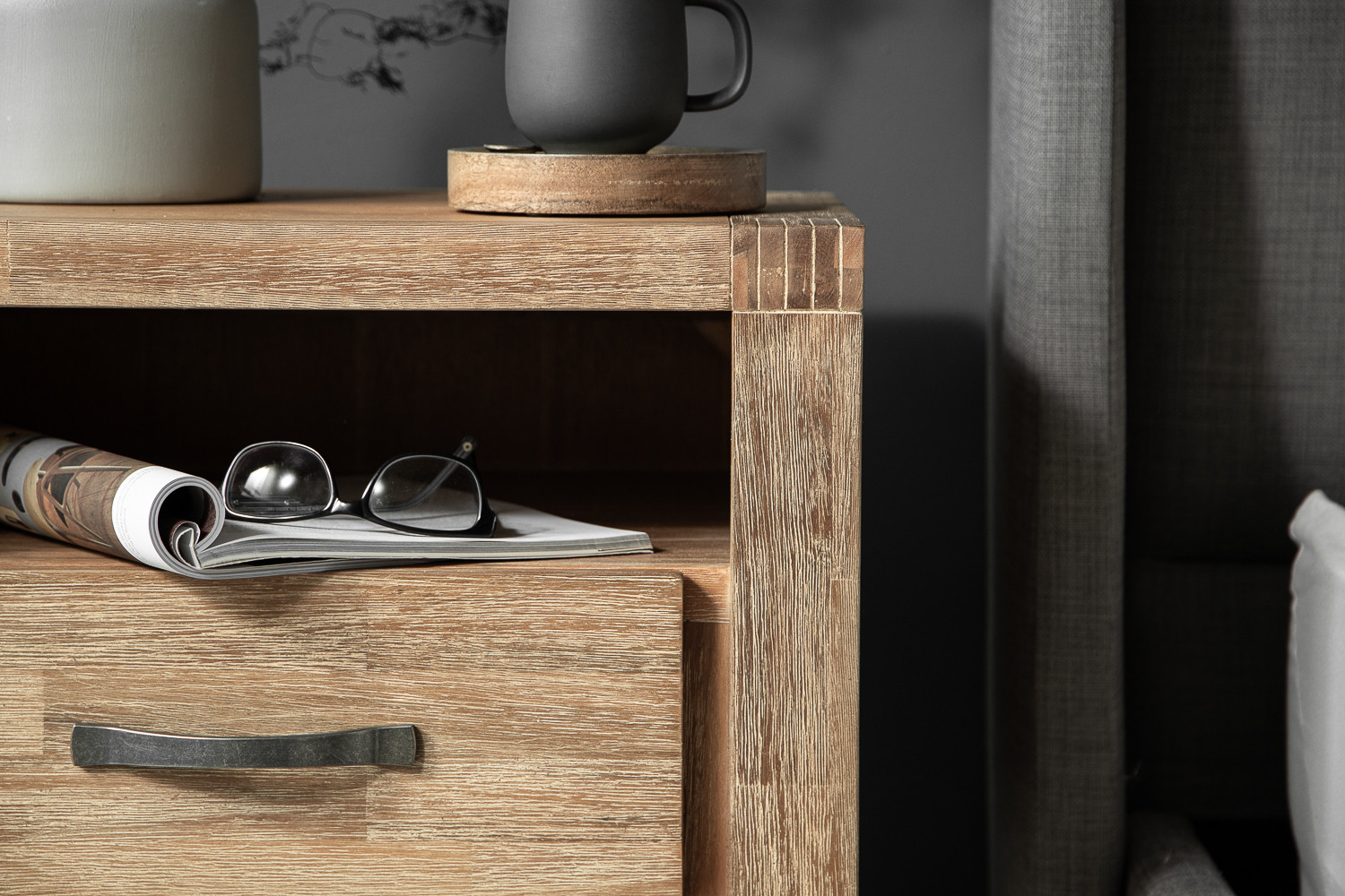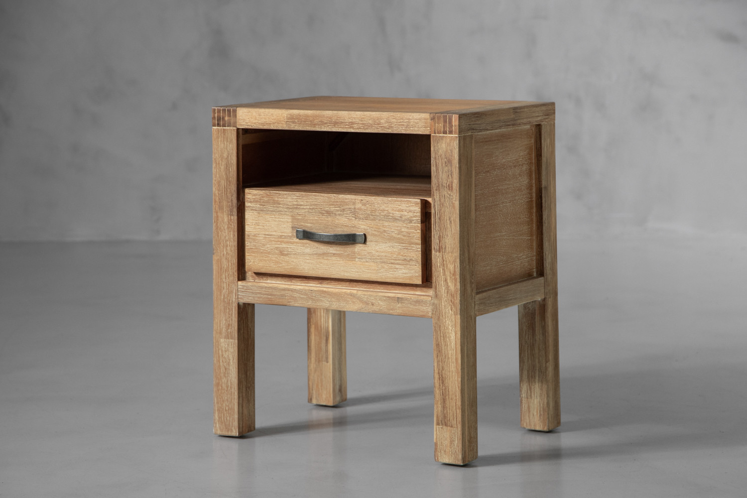The McKinley Pedestal welcomes gorgeous, sturdy solid wood in neutral tones to your bedroom. Built from Acacia wood, this contemporary design, with beautiful metal handles, blends natural inspiration and modern class to anchor your sleep sanctuary. The McKinley features a single drawer and storage void for keeping essentials close and a brushed finish to highlight the warmth of natural wood.