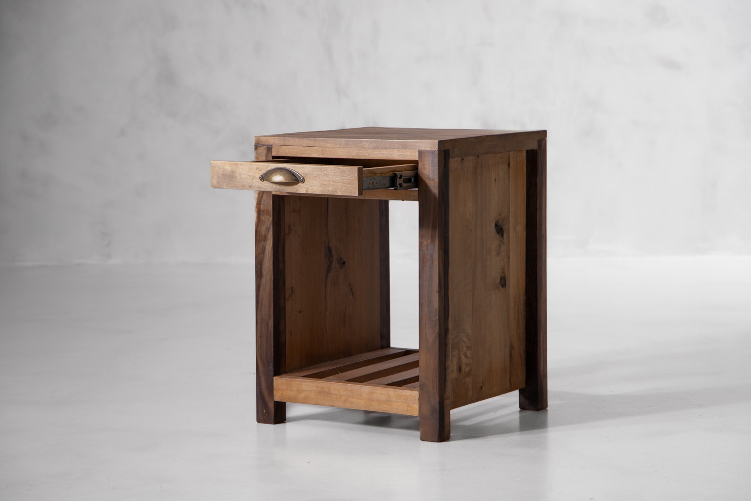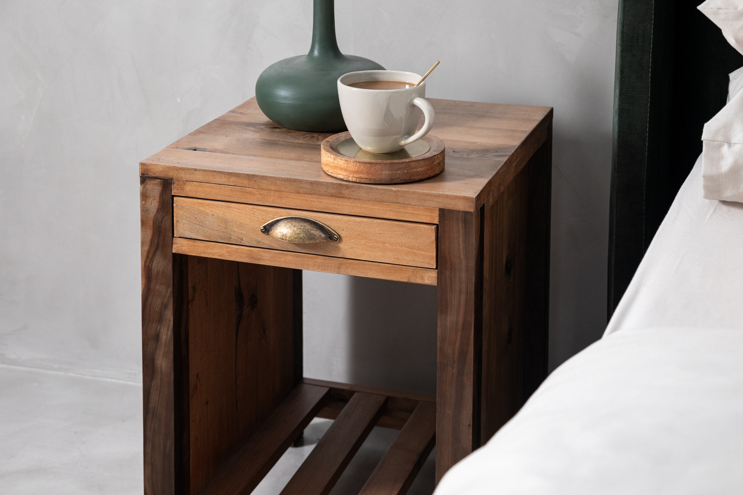 The bedside table is constructed from solid Poplar wood, a softer hardwood with exceptional durability and pliability – to provide a superior aesthetic and a warm, natural feel.