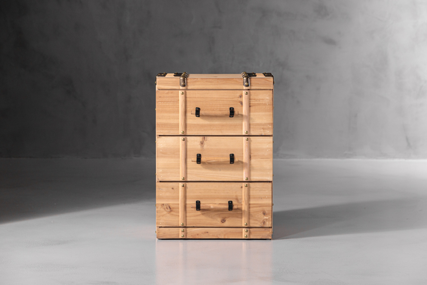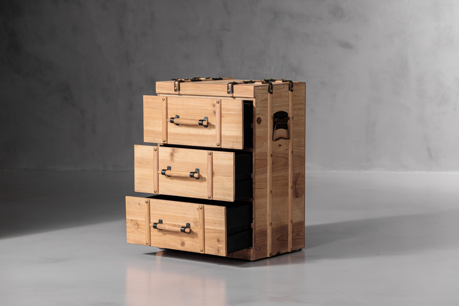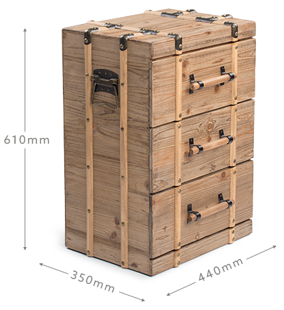 Expertly crafted from strong and lightweight Fir Wood with a natural rustic finish, the chest-like design features unique brushed metal and wood detailing for a combined vintage-industrial flavour.
