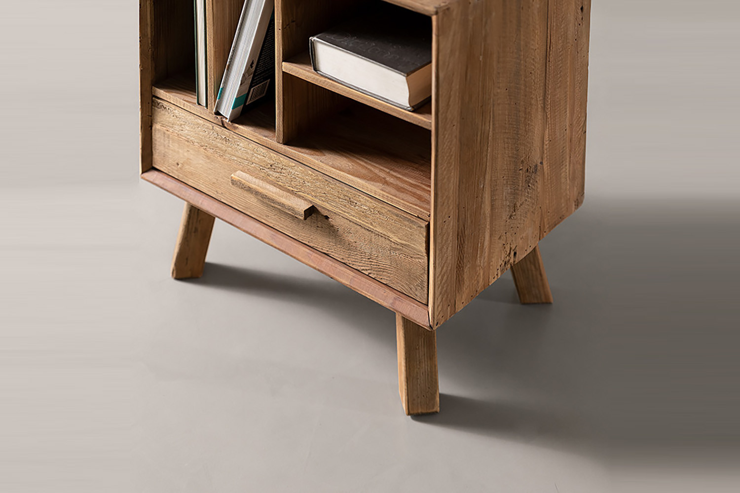 Beautifully crafted from reclaimed Pine, the Voyager Pedestal features warm natural tones and rustic finishes that provide both sustainability & durability. This piece offers ample storage space with a convenient drawer and four spacious shelves making this a convenient shelf to compliment your space.