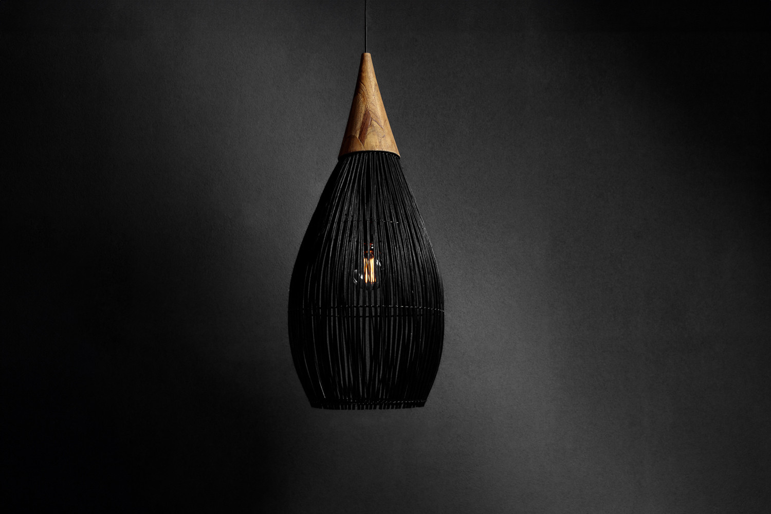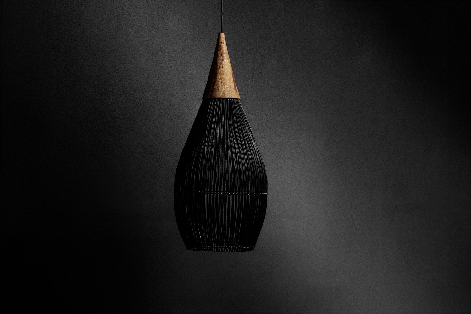 The Lumba Pendant is a statement of natural elegance, featuring an organic water droplet shape with hand-woven black rattan and warm teakroot tones. Designed to cast a soft, inviting glow, this pendant’s intricate weave allows light to dance through its woven ropes, creating captivating patterns on your walls. The Lumba Pendant adds sophistication to any room, blending earthy materials with a unique shape for a striking focal point.