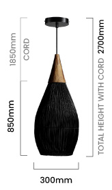 Bring natural artistry and ambient light into your home with the Lumba Pendant. This beautifully crafted pendant light is made from intricately woven black rattan, forming an organic water droplet shape that elegantly tapers into a teakroot cone. The natural tones of teakroot paired with the depth of black rattan create a stunning contrast, making this pendant a true statement piece in any setting.
