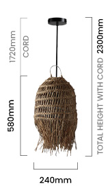 Whether paired with minimalist furniture for a modern look or layered with natural textures in a boho-chic setting, the Rafiki Pendant adapts effortlessly to various interior styles. Its sustainable craftsmanship and timeless appeal make it a versatile and enduring addition to your decor.