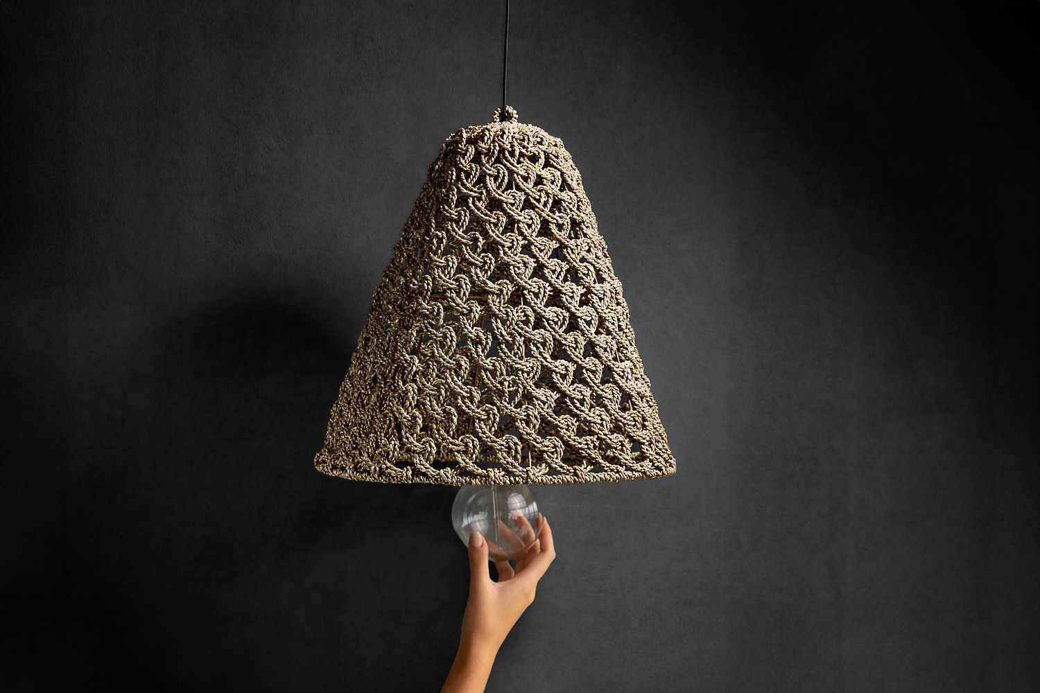The Taiga Pendant is an exquisite lighting solution that brings warmth and style to any room. Hand-woven from natural pandan twine, its cone shape creates a soft, ambient glow, perfect for enhancing any space with a sense of natural elegance. Ideal for adding texture and a captivating play of light, this pendant is as functional as it is beautiful.