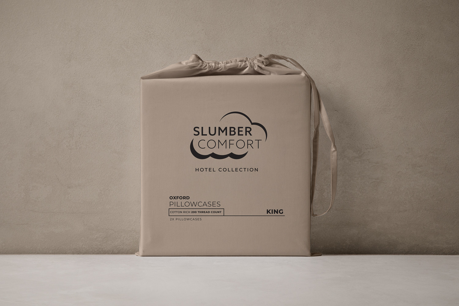 The Hotel Collection Oxford King Pillowcase Set brings premium softness to your sleep space. Crafted in crisp polycotton percale with a refined Oxford border, the rich fabric blend balances temperatures, softens the feel, and minimises wrinkling for effortless care. This set of two is finished in understated stone with edged seams for a neat, tailored look.